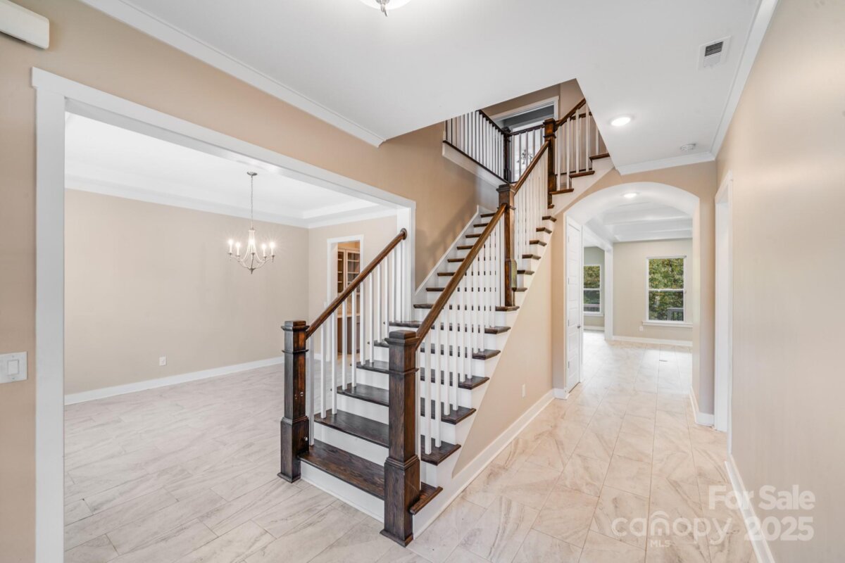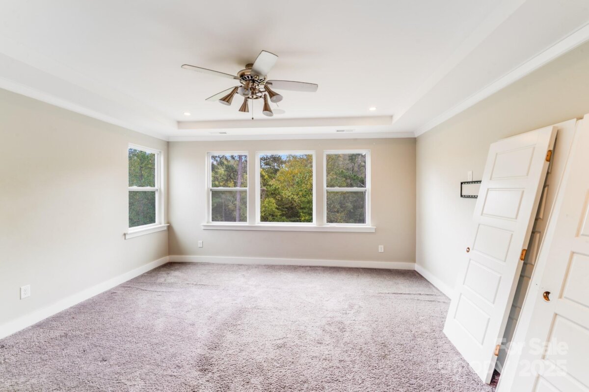 Welcome to this stunning 4-bed, 3.5-bath home tucked away on a wooded lot surrounded by mature trees in Charlotte, NC. Step inside to discover an inviting open floor plan featuring a spacious family room with a cozy log —perfect for relaxing or entertaining. The chef’s kitchen is designed to impress with a large island and walk-in pantry, offering both style and functionality. A bedroom and full bath on the main level provide convenience and flexibility for visitors or multi-generational living. Upstairs, you’ll find additional bedrooms, including a luxurious primary suite complete with walk-in closets and a private ensuite bath. Enjoy peaceful mornings on the covered front porch or unwind in the evenings on the rear porch overlooking the tranquil, wooded surroundings. Located in a vibrant community with resort-style amenities—including a clubhouse, fitness center, outdoor pool, playground, tennis courts, and walking trails—this home offers the perfect blend of comfort, convenience, and lifestyle.