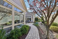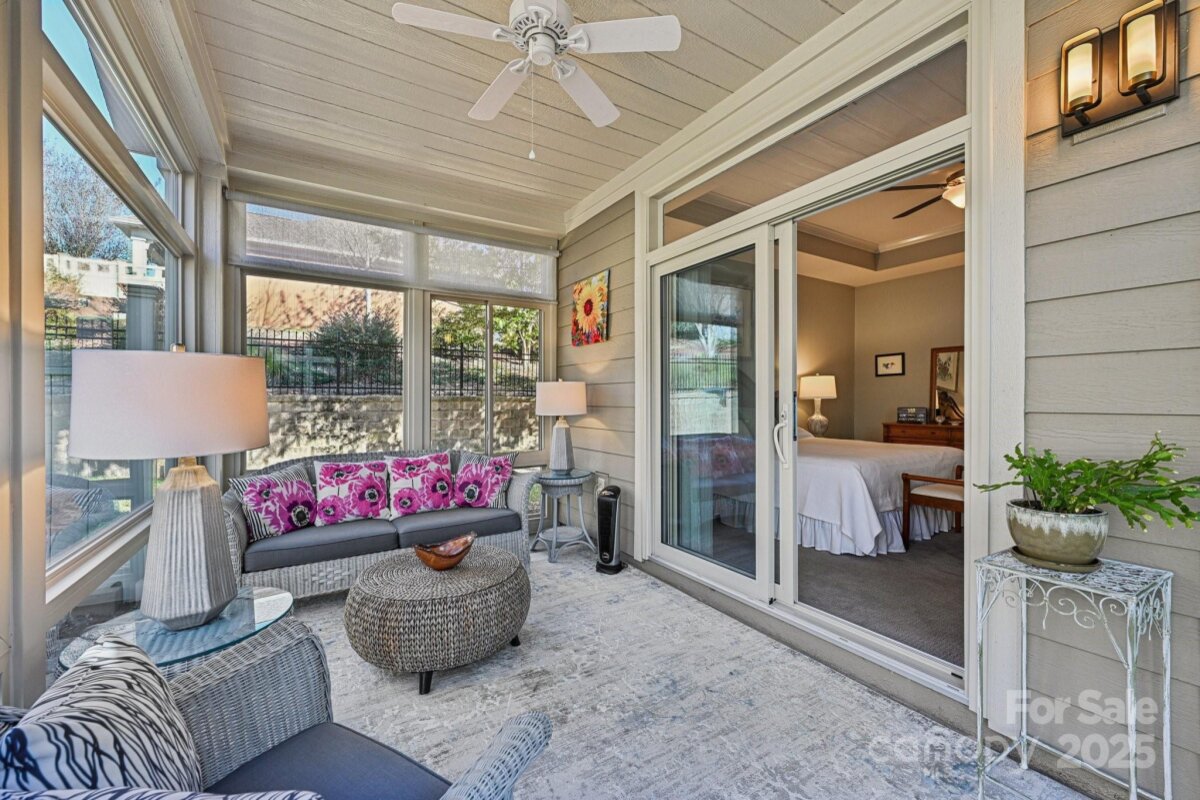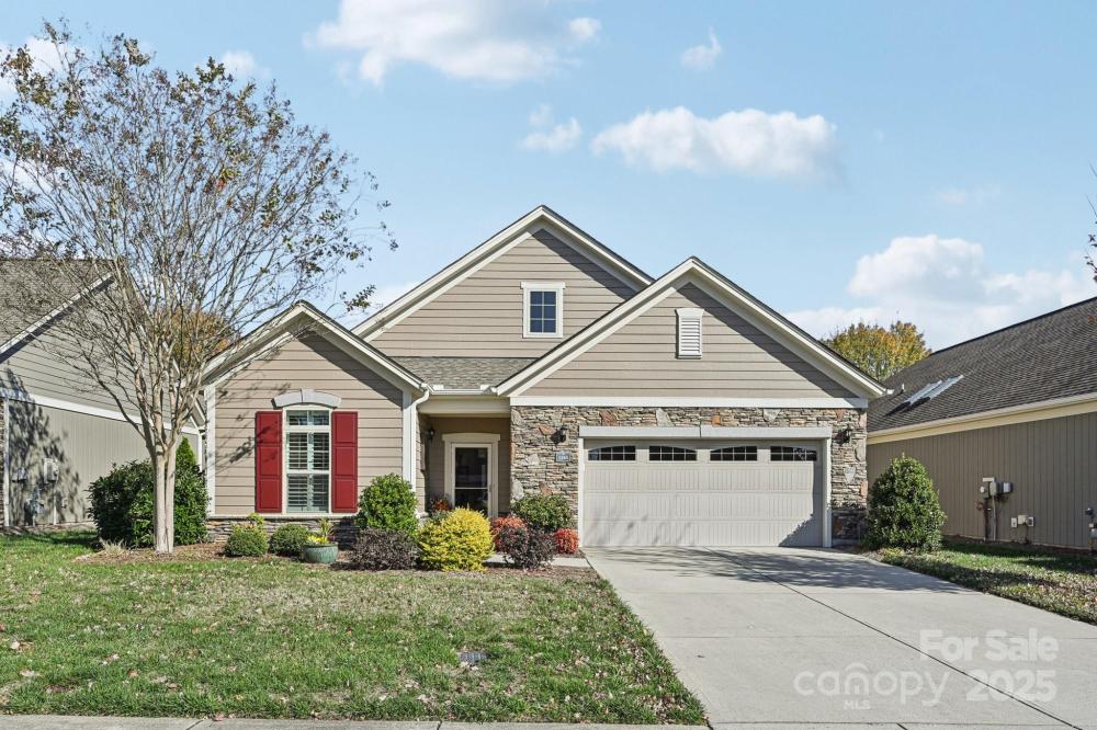Discover effortless luxury in this beautifully upgraded ranch in The Courtyards of Marvin—one of the Waxhaw and Charlotte area’s premier 55+ communities. Bright and open, windows everywhere bringing the outside in! This home features an inviting living room with gas fireplace, dining area, hardwood floors, recessed lighting and custom shades. The modern kitchen shines with lovely white painted cabinetry with custom tile backsplash, quartz countertops, a large island, updated lighting, stainless steel apps, Bonus! fridge to remain! — perfect for everyday living or entertaining. A French-door den offers flexible space for work or relaxation. The serene primary suite impresses with a spacious bath featuring skylight, dual vanities and a zero-entry tile shower, plus generous walk-in closet. From the Primary suite, direct access to the lovely added Sunroom- what a treat to enjoy the outdoors protected and in privacy. Sizeable second bedroom and full bath provide ideal guest or hobby space. Outdoor living is effortless with a professionally coated anti-slip patio. Paver walk-ways and lush landscape complete the setting for enjoying during morning coffee or gatherings. Tons of storage available, interior storage closet garage storage. Best of all, move-in ready with all appliances incl. washer and dryer to remain! Recently painted exterior and fresh neutral interior paint. HOA-included lawn care means low-maintenance living at its finest. Enjoy the perfect blend of elegance, comfort, and convenience, premier location in close proximity to all the best area shopping and restaurants. Don't miss this exceptional Courtyards of Marvin home.