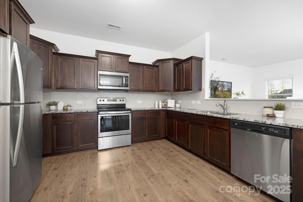 Welcome to this stunning 4BR / 3BA home nestled on a charming, sidewalk-lined street. Step inside to an open-concept layout filled with natural light. The gourmet kitchen boasts granite countertops, stainless steel appliances, and stylish finishes throughout. A guest bedroom with full bath on the main level offers flexibility, while the upstairs features a spacious loft and three large bedrooms, including a luxurious primary suite with ensuite bath. Enjoy outdoor living on the rear patio—perfect for entertaining or quiet evenings. Home features a fenced in rear yard as well for added privacy. Ideally located just minutes from I-485, Hwy 601, and 24/27, with easy access to Charlotte, Concord, Albemarle, and Monroe. Approximately 22 miles from Uptown Charlotte, this home offers both comfort and convenience. Don’t miss this exceptional opportunity!