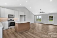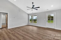 Discover this newly constructed, custom-built 3-bedroom, 2-bath home designed with both style and functionality in mind. The home features a one-car garage and an open-concept layout enhanced by vaulted ceilings and luxury vinyl plank flooring throughout. The primary suite offers a well-appointed retreat with an adjoining bath featuring shaker-style cabinetry, quartz countertops with dual sinks, and a tiled shower. The kitchen is both practical and refined, with ample storage provided by shaker-style cabinets and quartz countertops, creating a clean, beautiful aesthetic. Just off the garage, a thoughtfully designed mudroom includes a dedicated laundry area, adding everyday convenience and additional storage. Sliding glass doors lead to a patio and backyard with open farm views. Two additional bedrooms and a full bath complete the home’s layout.