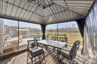With a half-acre lot and a rural-feeling location, this home provides space and peace without giving up convenience. The layout works for many lifestyles, with three bedrooms on the main level and an upstairs bonus room with a closet. This adds flexible space without taking away from the open main living area, or can be used as a 4th bedroom. The great room centers around a shiplap TV wall with an electric fireplace and custom wood mantel, creating a comfortable spot for everyday downtime. Well kept hardwood floors in the living areas. All light fixtures on main level have been replaced. Brand new microwave, and the stove was replaced in 2023. The primary suite features an updated bathroom, and the secondary bedrooms with full bath are set on their own side of the home. The added barn door can close that section off for added privacy. Large two car side load garage and plenty of parking space in the driveway. 30 amp receptacle was added for your fun tools and hobbies. If you're not already sold yet, the backyard will seal the deal! Extended deck and gazebo, salt water above ground pool, and completely fenced in. Seller has kept the home immaculate - a true move in ready home. ALL of this with a great location in a non HOA community.