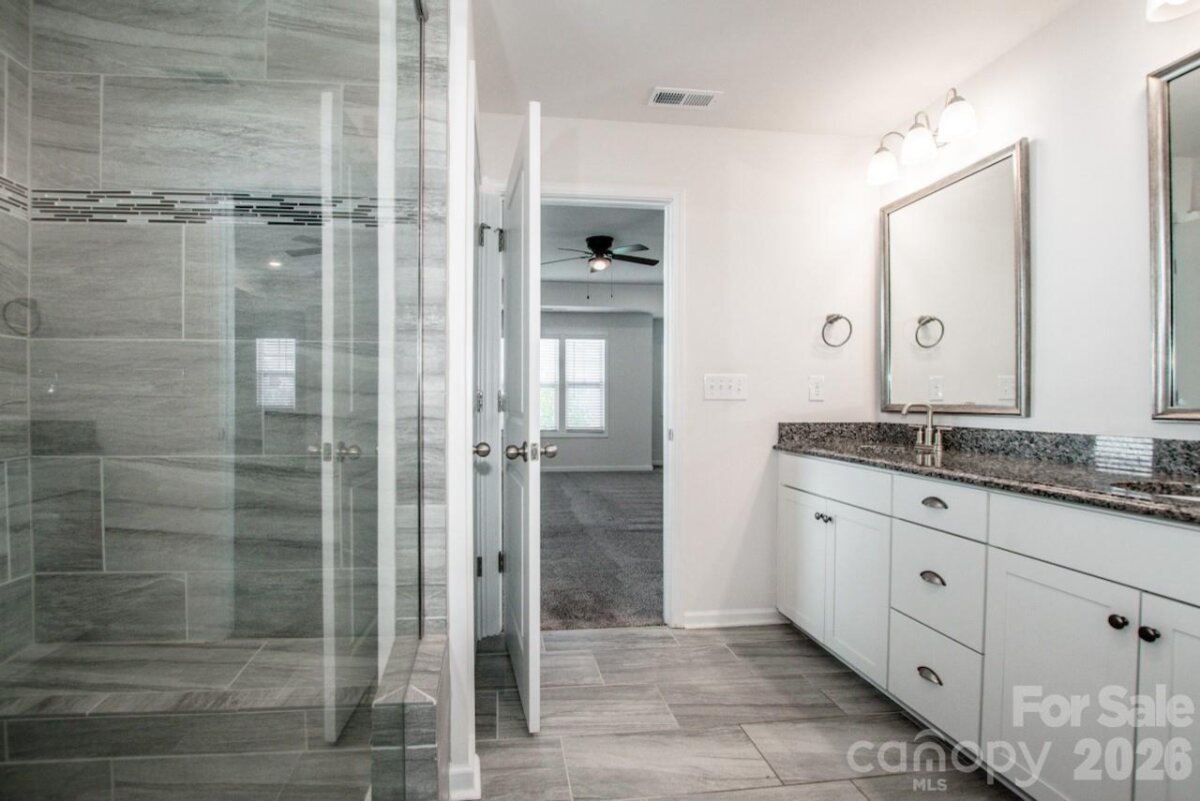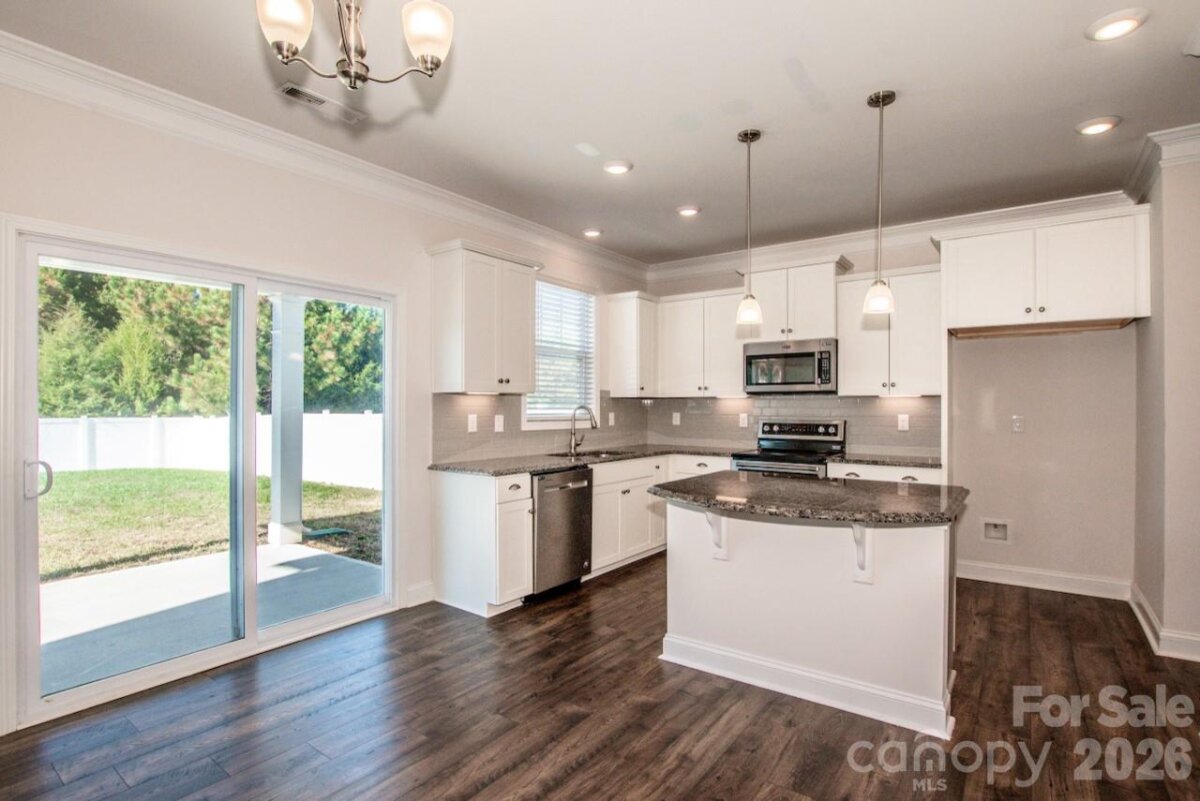 Built in 2020, this home still shows like new with the added benefits of improvements from its original owner! Step onto the covered front porch, and inside to find a functional, light-filled, layout with granite tops throughout, white shaker cabinetry, and cool neutral tones. The kitchen features an island with pendant lighting, tile backsplash, and stainless appliances. Step out back through the sliding glass door, to a covered patio overlooking the private, fenced back yard. The family room centers around a cozy, gas fireplace to enjoy this fall and winter. Upstairs, the spacious owner's suite features an oversized tile shower, and dual sinks, and an expansive walk-in closet. The secondary bedrooms share a well-appointed bath, also with dual sinks and plenty of storage. A loft area provides flexible space for a home office, second living area, playroom, or hobby zone. Solar panels help reduce utility costs especially during summer months. Community features include a pool, clubhouse and playground. Just minutes from downtown Mooresville and the town of Davidson, as well as convenient access to both I-85 and I-77, Lowe's Corporate, and Duke Health LKN. Carpets were just cleaned and living areas are freshly painted. Schedule your showing today!