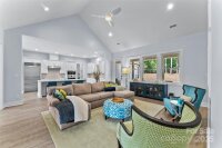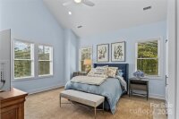 This recently built modern farmhouse (2024) still looks brand new and is filled with fantastic upgrades! Quartz countertops throughout from the large breakfast bar island to each bath and the laundry room. The kitchen features a walk-in pantry, white cabinets with hidden trash-pullout and soft-close drawers, subway tile backsplash, a Wolf smooth-top induction cooktop, and stainless kitchen appliances including a Sub-Zero refrigerator, Bosch dishwasher, Wolf built-in microwave, Wolf wall-oven, and a warming drawer. It is open to the dining room and great room, which features a vaulted ceiling and an electric fireplace with floor-to-ceiling shiplap surround. There is an office off the great room with barn doors that can be shut for privacy. The primary suite on the main level is a wonderful retreat with vaulted ceiling, large walk-in closet with closet system, and a stunning bath with a beautifully tiled shower, freestanding tub, 2 sink/vanity areas with smart mirrors, and a separate water closet. On the other side of the home, you'll find 3 more bedrooms and 2 more baths (also beautifully upgraded), and a barn door can be used to close off one of the full baths along with 2 of the bedrooms if you'd like to create a private area for in-laws or guests. A spacious laundry room with sink and a powder room round off the main level. Upstairs you'll find a huge bonus room and a partially floored walk-in attic for storage. The oversized 2-car garage includes a Tesla charger. You'll love relaxing on the huge covered rocking-chair front porch with wood columns and black metal railings, and on the covered porch in the back overlooking the wooded portion of the lot for ultimate privacy. This home is just steps away from community trails that go around the lake. Anchors Landing surrounds Emerald Lake, Heron Lake, and touches Lake Hickory as well. It is a gated community, so you are allowed to use a golf cart to visit the amenities, which also include a clubhouse and pool. Come live the good life in Anchors Landing in this gorgeous like-new home!