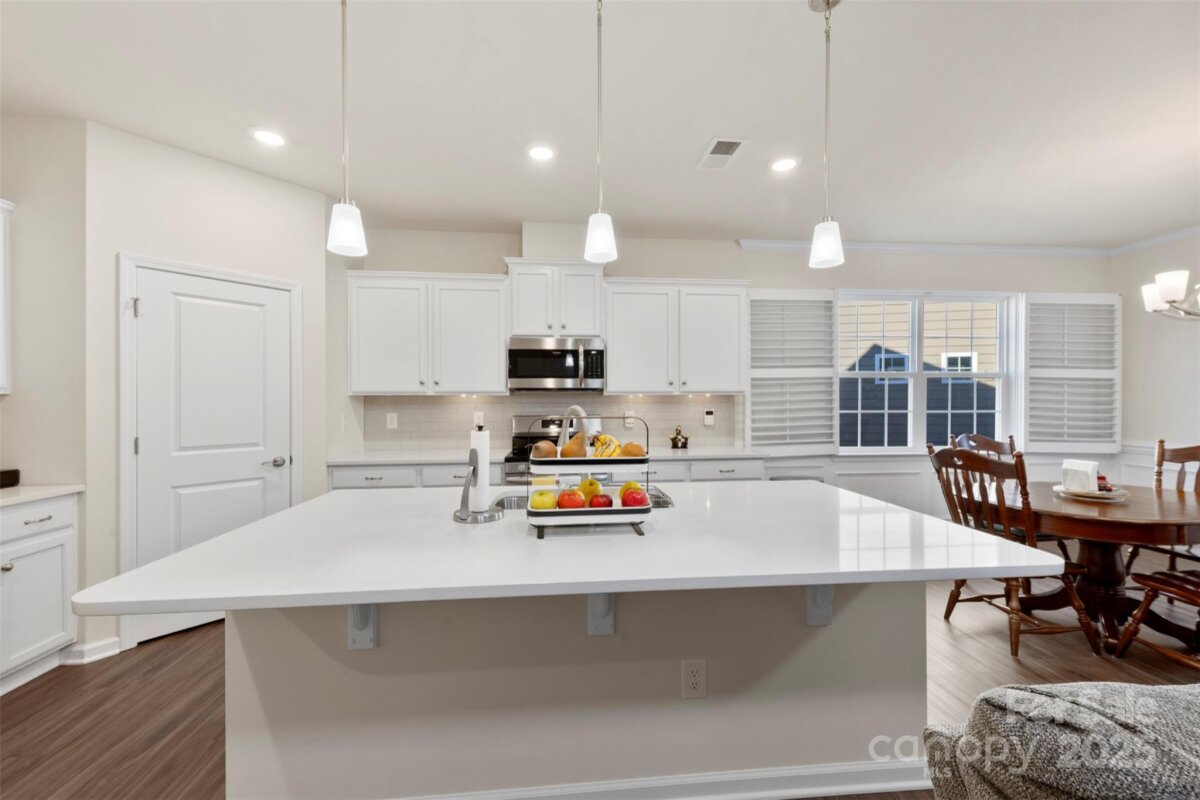 Welcome to Imagery at Mountain Island Lake, a premier 55+ active-adult community offering low-maintenance living and an exceptional lineup of resort-style amenities. This beautifully appointed one-story home is ideally situated in one of the most sought-after lake communities in the Charlotte area. Designed with comfort and functionality in mind, this 2-bedroom, 2-bath home with an office/flex room features a spacious open floorplan that seamlessly connects the living, dining, and kitchen areas—perfect for both everyday living and entertaining. The kitchen showcases quartz countertops, crisp white cabinetry, stainless steel appliances, and a large island with breakfast seating, along with convenient nooks ideal for a coffee or beverage station. A split-bedroom layout offers privacy, highlighted by charming arched walkways leading to each suite. The French-door office provides a bright, quiet space for work or hobbies. The home is filled with natural light and enhanced by plantation shutters throughout for added privacy. Durable luxury vinyl plank flooring spans the main living spaces, with tile flooring in all baths. The serene primary suite features a spacious bath with dual vanities and quartz countertops. Step through the main living area onto a large screened-in porch, then out to an extended paver patio overlooking the community’s wooded walking trails—a peaceful and private outdoor retreat. The generous laundry room provides excellent flexibility, with space for a utility sink, folding station, or extra storage. Living in Imagery means enjoying an unparalleled suite of amenities, including a clubhouse, fitness center, heated resort-style pool (open May–October), lighted pickleball and tennis courts, walking trails, dog park, lake access, kayak launch and storage, plus a network of creative cabins featuring a library, pottery studio, art studios, sewing cabin, and celebration spaces. A full-time Lifestyle Director curates a robust calendar of events, clubs, and activities, creating a vibrant and social lakeside community. A future community dock is also planned nearby. This home offers the ideal blend of comfort, privacy, and active-adult living in a truly exceptional lakefront neighborhood.