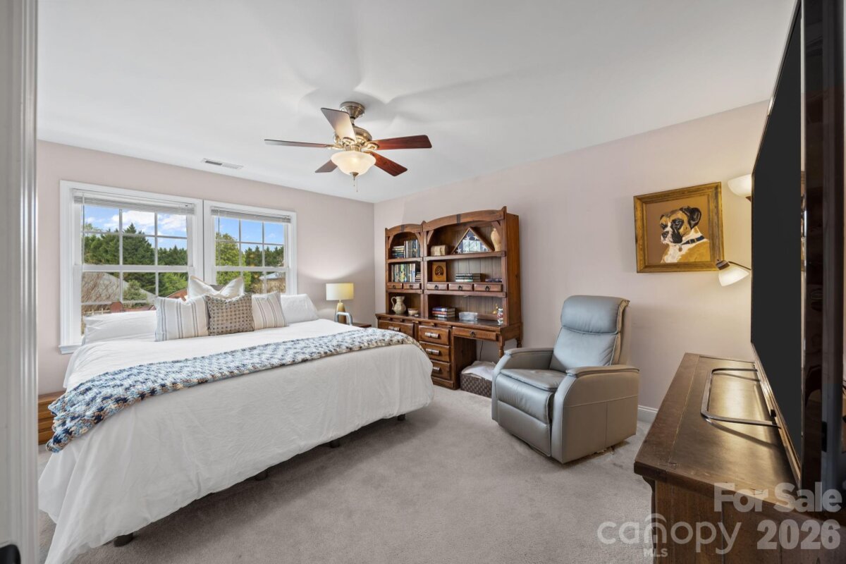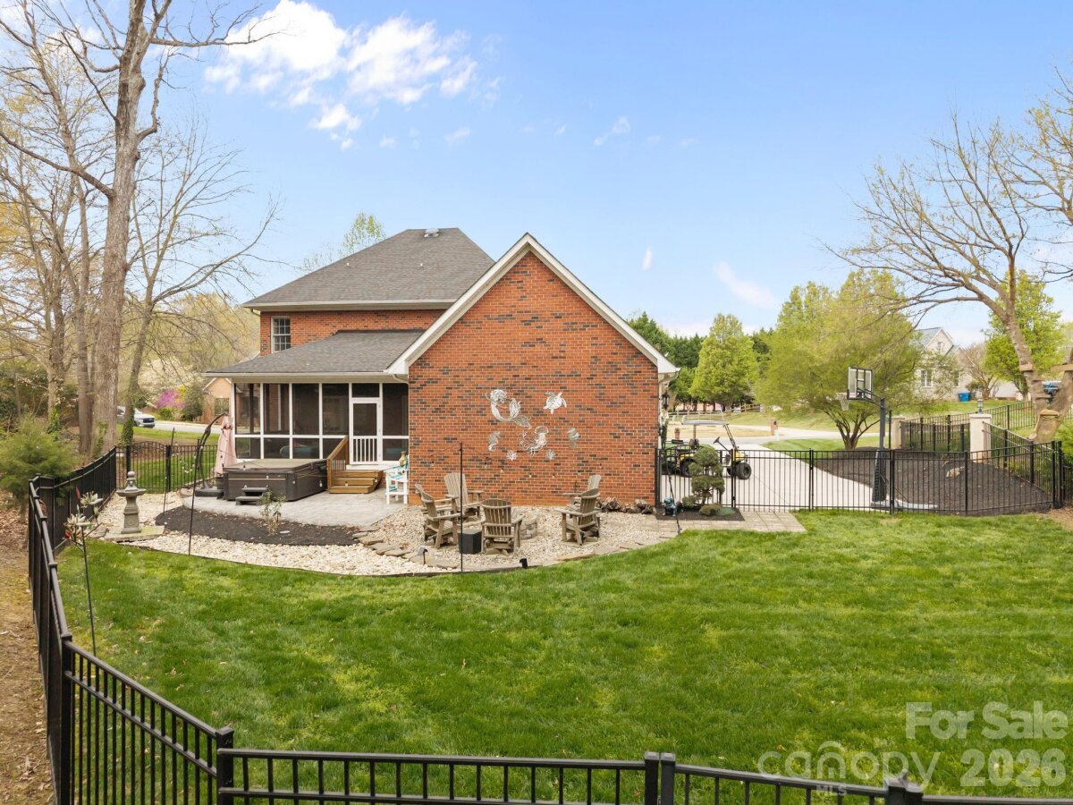 Sought-after, custom-built, full brick residence featuring a professionally manicured yard and nestled on a generous half-acre lot with NO HOA! Enjoy unparalleled convenience to all that Mooresville has to offer from this quiet, ideally situated neighborhood, part of an award-winning school district. An exceptional floor plan boasts two spacious Primary Suites on the main level, complemented by two additional secondary bedrooms upstairs. The upper level also features a massive bonus room and flexible-use space, great for a home office or gym. A functional side-load two-car garage provides ample storage. Step outside to the large screened-in porch, a retreat for your morning coffee or evening relaxation. The private backyard is an entertainer's dream, complete with a cozy firepit, ideal for gathering with family and friends on crisp evenings. Enjoy the convenience of being walkable to St. Therese Catholic Church and local shopping. This is a rare opportunity to own a true gem. Make this spectacular property your perfect place to call home!