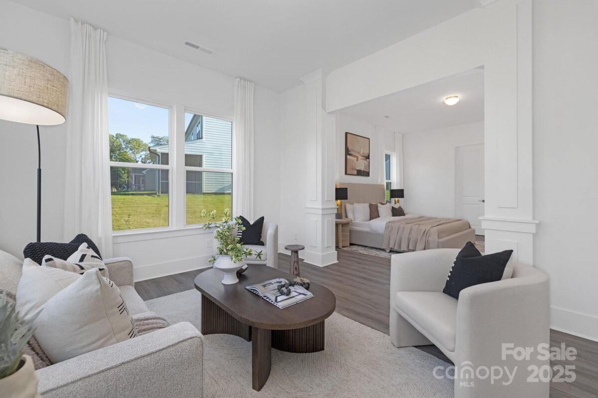 The Brodrick at Harbor Pointe at Edgewater—Charlotte’s 2024 MAME Community of the Year—offers refined living with a 2-car garage. This home is situated on a large 0.698 acre wooded lot and boasts soaring ceilings, a rear screened porch, additional patio, and a gourmet kitchen with quartz counters, tile backsplash, gas cooktop, vented hood, double wall oven, microwave drawer, and modern finishes. The great room features a cozy gas fireplace. The spacious main-level primary suite includes a massive walk-in closet and a luxury en suite. Two additional bedrooms, full bath, and laundry complete the main floor. Upstairs offers a loft, additional bedroom, full bath, and storage/media closet. Enjoy resort-style amenities including golf, boating, and trails, with fine dining, racquet sports, and retail.