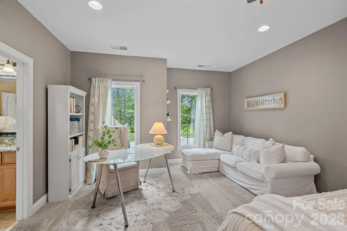 WELCOME TO YOUR STUNNING CUSTOM HOME! This meticulously maintained 5 bedroom, 4 bath property is nestled on a private lot in the quaint Anniston Grove community and ZONED FOR TOP RATED WEDDINGTON SCHOOLS! Boasting over 5,100 sqft, this roomy home offers exceptional living & entertaining space. The heart of this home is its spacious gourmet kitchen, with an oversized island for food preparation, separate wine, coffee & additional eating bar; perfect for gatherings! The kitchen opens to the charming family room w/ coffered ceiling & gorgeous stone gas fireplace. This home has custom rounded walls, tall oversized doors, tons of storage closets as well as extensive trim/millwork, a must see to appreciate! The main floor dedicated office is ideal for remote work, while the expansive primary suite includes a cozy sitting area, a generous walk-in closet & flex space with window ideal for a gym, second office, or separate his/hers closets. Step outside to your private retreat w/ newer composite deck (2024) & covered outdoor entertainment area complete w/ grand wood burning fireplace (2016). There is cleared open space between deck & covered patio area, perfect for a backyard pool (see rendering)! Nearby shopping, grocery, parks and schools. Don't miss the opportunity to own this home full of luxury & comfort.