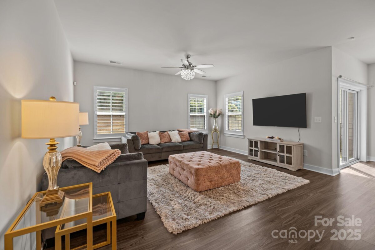 Welcome Home to Comfort, Convenience & Style! This home isn’t just a place to live—it’s a lifestyle. Enjoy truly low-maintenance living with lawn care included, plus access to a spectacular community pool, clubhouse, and miles of walking trails. Everyday errands are a breeze with Wesley Chapel Village Commons just minutes away. Step inside and you’ll instantly feel at home. The bright, open-concept main level is perfect for modern living, where the chef’s kitchen shines with a walk-in pantry, quartz countertops, stainless steel appliances, and a large central island that connects seamlessly to the dining and family rooms. The first-floor Owner’s Retreat is your private escape, featuring a spa-like bath and expansive walk-in closet. A second bedroom, full hall bath, and a flexible room—ideal for a home office, library, or den—make this floor as practical as it is beautiful. Upstairs, a spacious loft, third bedroom, and full bath add even more room to spread out. But the magic doesn’t stop inside—step out to the covered porch and fully fenced yard, the perfect spot for morning coffee, backyard barbecues, or simply relaxing in your private outdoor haven. With premium finishes like Hardie Plank siding, LVP flooring throughout the main living areas, and tile in all wet spaces, this home blends style, durability, and function effortlessly. Don’t just buy a house—discover the joy of a carefree, active lifestyle in a home that has it all. Schedule your private tour today and fall in love with where you live!