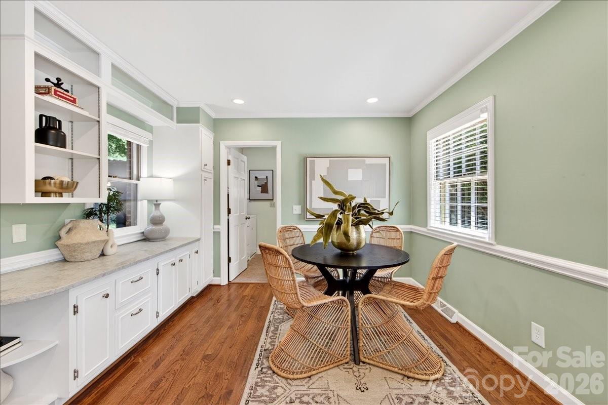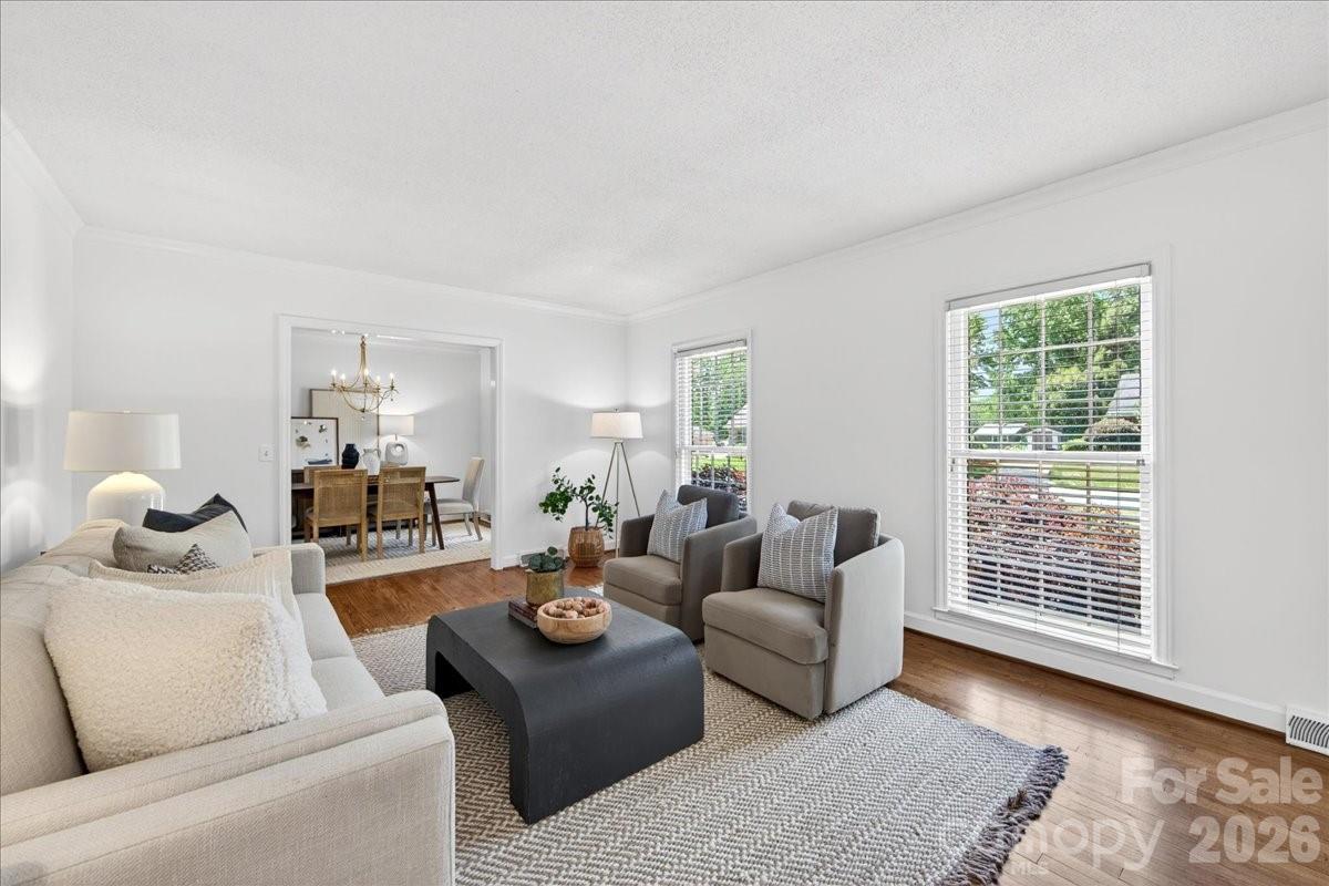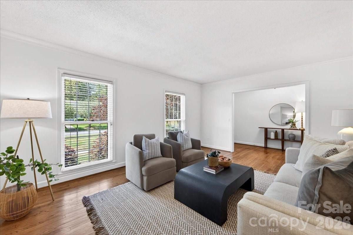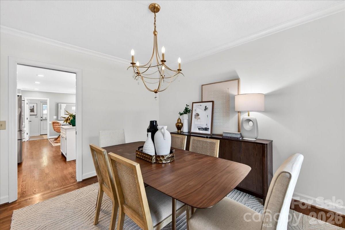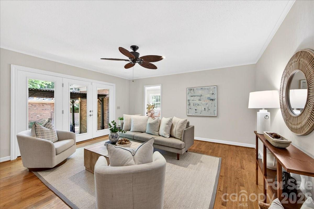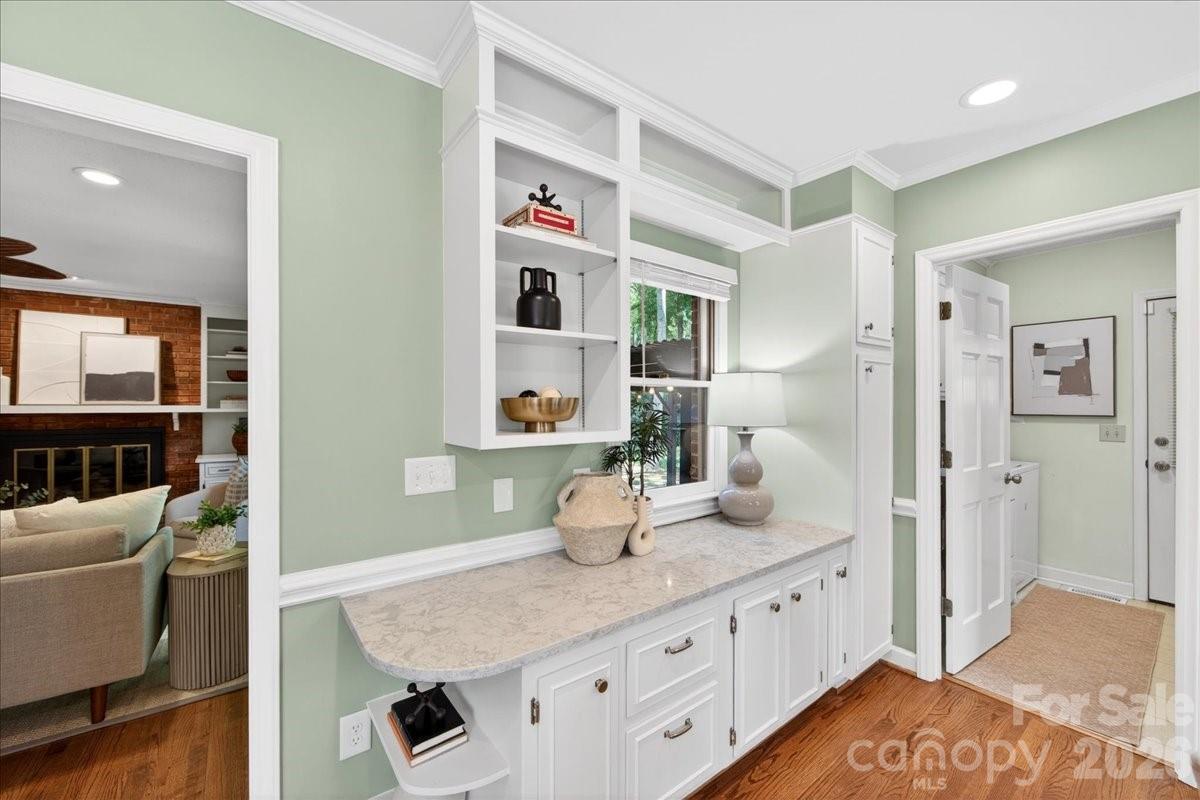 This charming one-story home is perfectly situated on a lush, level interior lot within one of Charlotte's most coveted neighborhoods. Combining classic lines with modern refinements this home's seamless flow is perfect for accessibility and modern living. An updated kitchen with beautiful countertops, white cabinetry and kitchen island. A laundry/mudroom with half bath and exterior door to leading to the backyard/carport area. Beautiful hardwood flooring throughout the entire home. Large living and dining rooms. Family room features fireplace and built ins and new Anderson sliding doors that create a seamless transition to the outdoors. The covered brick Patio is an ideal space for year-round entertaining and includes an inline gas grill. Updated primary suite features a spa-like, renovated bathroom with double vanity, large shower, walk in closet plus additional closet. Two additional bedrooms and full bath.The private backyard is a secluded outdoor space filled with established perennial plants. A convenient one-car carport provides sheltered parking and includes a large storage room. Stonehaven has two neighborhood, membership swim clubs for summer recreation; Rama Swim and Racquet and Sardis Swim and Racquet Club. The McAlpine Greenway is nearby which is perfect for walking, biking, and enjoying nature. Convenient location to Cotswold, Southpark and easy commute to center city.