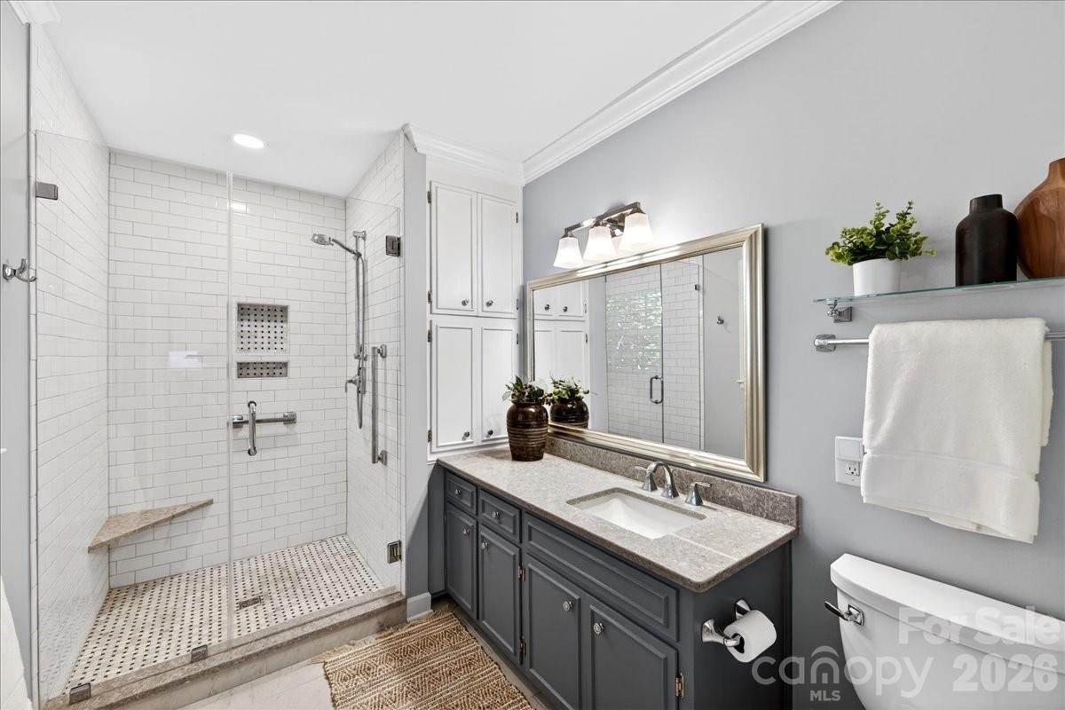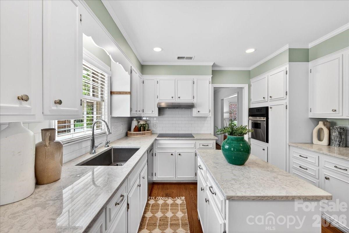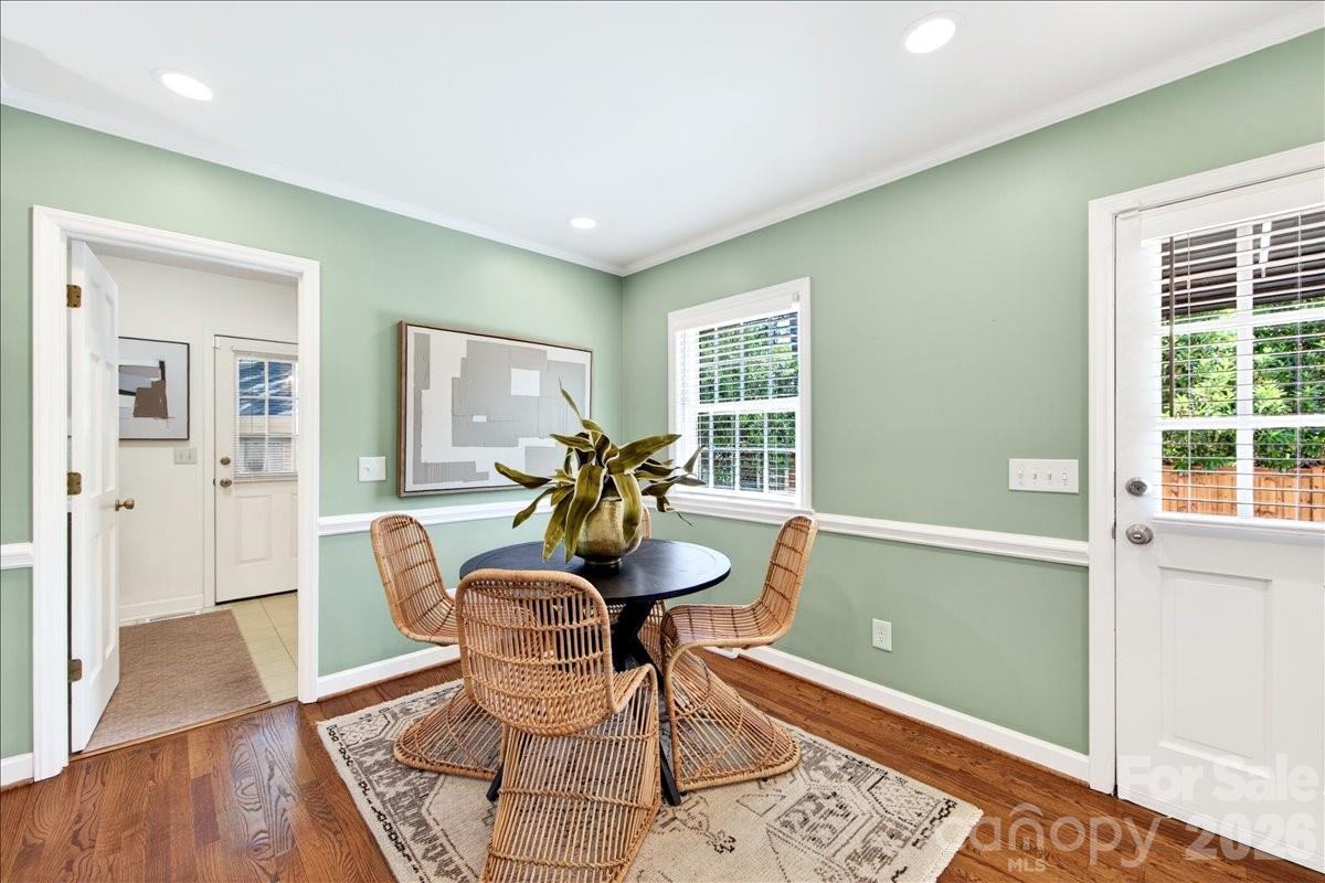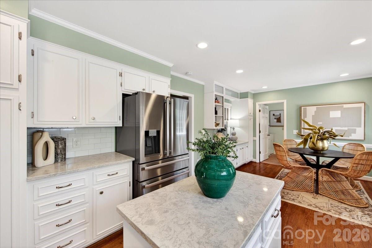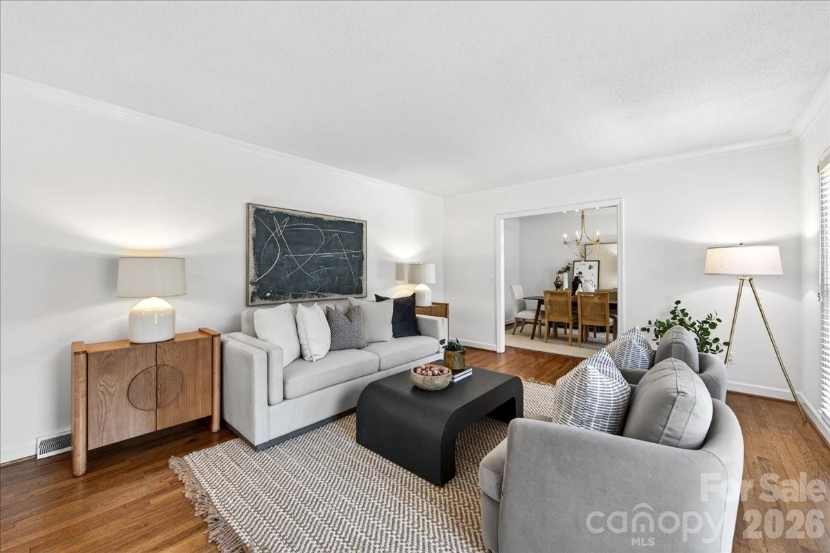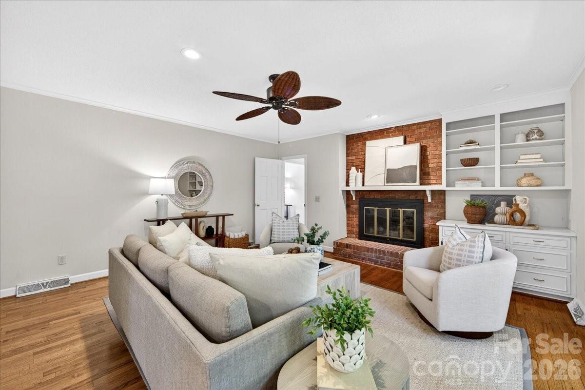 This charming one-story home is perfectly situated on a lush, level interior lot within one of Charlotte's most coveted neighborhoods. Combining classic lines with modern refinements this home's seamless flow is perfect for accessibility and modern living. An updated kitchen with beautiful countertops, white cabinetry and kitchen island. A laundry/mudroom with half bath and exterior door to leading to the backyard/carport area. Beautiful hardwood flooring throughout the entire home. Large living and dining rooms. Family room features fireplace and built ins and new Anderson sliding doors that create a seamless transition to the outdoors. The covered brick Patio is an ideal space for year-round entertaining and includes an inline gas grill. Updated primary suite features a spa-like, renovated bathroom with double vanity, large shower, walk in closet plus additional closet. Two additional bedrooms and full bath.The private backyard is a secluded outdoor space filled with established perennial plants. A convenient one-car carport provides sheltered parking and includes a large storage room. Stonehaven has two neighborhood, membership swim clubs for summer recreation; Rama Swim and Racquet and Sardis Swim and Racquet Club. The McAlpine Greenway is nearby which is perfect for walking, biking, and enjoying nature. Convenient location to Cotswold, Southpark and easy commute to center city.