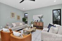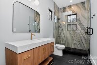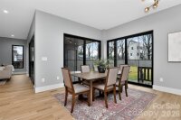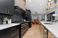 Stunning modern style 2 story home offering 4 bed / 3.5 bath with high end finishes and thoughtfully designed living spaces throughout. Enjoy abundant natural light and hardwood floors throughout the entire home – no carpet. Just off the foyer is a dedicated downstairs office with a custom barn door, plus a built in flex space with desk and cabinet storage. The open concept layout offers a spacious entertaining area that flows into the chef’s kitchen featuring a 10 ft waterfall edge island, 48 inch dual fuel range with griddle, custom hood, dueling wine coolers with wet bar, and a large walk in pantry. Upstairs includes a bonus or game room and generously sized bedrooms, each with its own en suite bath and large bathrooms for added comfort and privacy. The oversized primary suite offers skyline views and a spa inspired bath with a black soaking tub and large walk in shower. Additional features include a drop zone off the garage, painted 2 car garage with high ceilings, epoxy floors and side mount motors, laundry room with cabinetry and sink, and a tankless hot water heater. Relax on the covered back porch with a fireplace overlooking the fully sodded backyard. This home blends modern design, luxury, and everyday functionality. Just a short walk to Optimist Hall’s dozens of food stalls, bars, cafés and offers access to the LYNX light rail & the Little Sugar Creek Greenway. Come take a tour today!