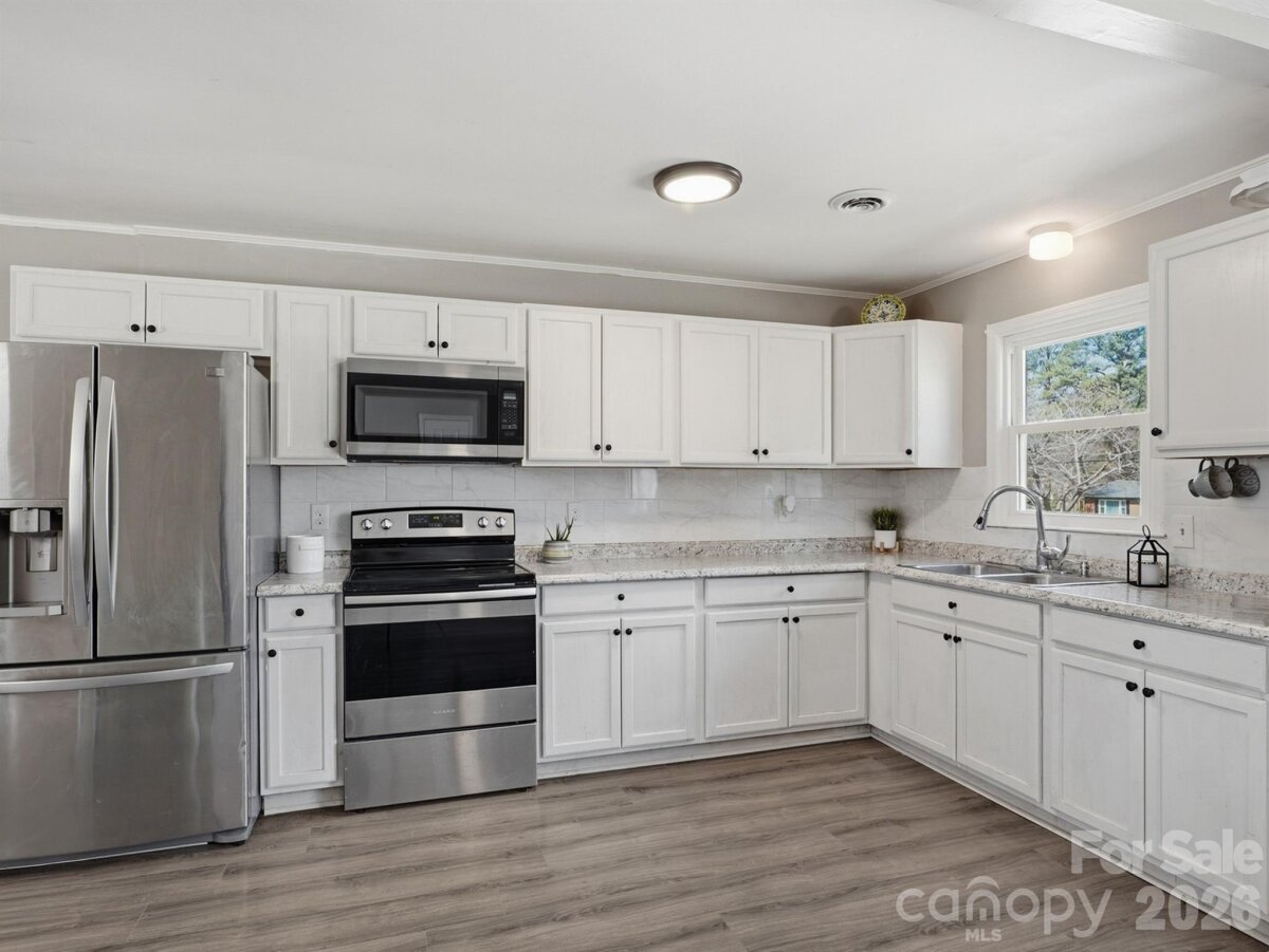 Welcome home to this beautifully updated brick ranch, perfectly situated on over half an acre with a spacious, fenced backyard that offers plenty of room to relax, play, and enjoy the outdoors. From the moment you walk in, you’ll notice the abundance of natural light pouring through the large front picture window, creating a warm and inviting feel throughout. The living room is anchored by a stunning floor-to-ceiling brick fireplace, giving the space both character and a cozy focal point. The kitchen is open and functional, offering generous counter space and ample cabinetry. Luxury vinyl plank flooring runs throughout the home, with the added bonus of LVP continuing under the bedroom carpet for future flexibility. This home features three comfortable bedrooms, including a primary suite with two closets and a private bath. The two additional bedrooms are well-sized and share a second full bathroom. Outside, you’ll appreciate the attached carport along with a convenient utility closet for additional storage. With updates like new gutters already in place and a setting that offers both space and privacy, this home is ready to welcome its next chapter.