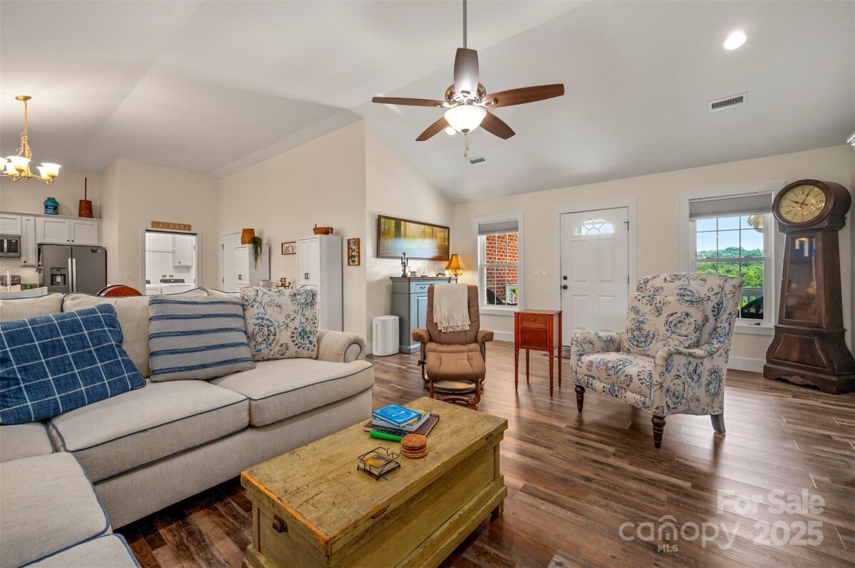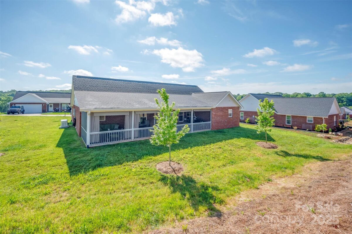 Minutes from the convenience of downtown Rutherfordton, this classic brick home offers affordable elegance in an age-restricted community. Tremendous curb appeal w/well-established landscaping, easily accessible double car garage and a 12x40 screened porch w/outdoor shades included. Roomy open concept layout with vaulted great room, natural gas fireplace, and low-maintenance vinyl plank flooring. Love the U-shaped kitchen w/shaker style cabinetry and tall uppers for added storage, gorgeous granite tops, breakfast bar & additional pantry/coffee bar area. Generous primary suite w/huge walk-in closet, adult-height double bowl vanity and shower w/brand new smoked glass sliding door. Custom window treatments, Generac whole house generator, public utilities & yard maintenance provided by the HOA. Cozy community not far from Rutherford Regional and other medical providers, Thermal Belt Rail Trail, shops, restaurants & more!