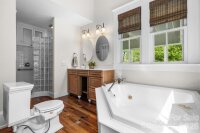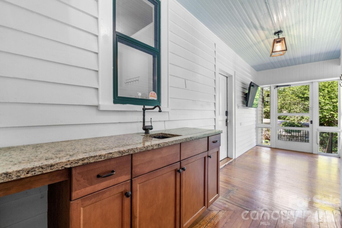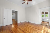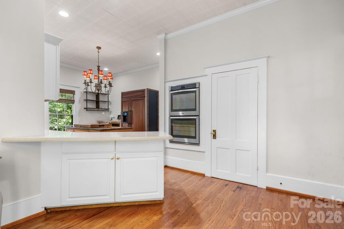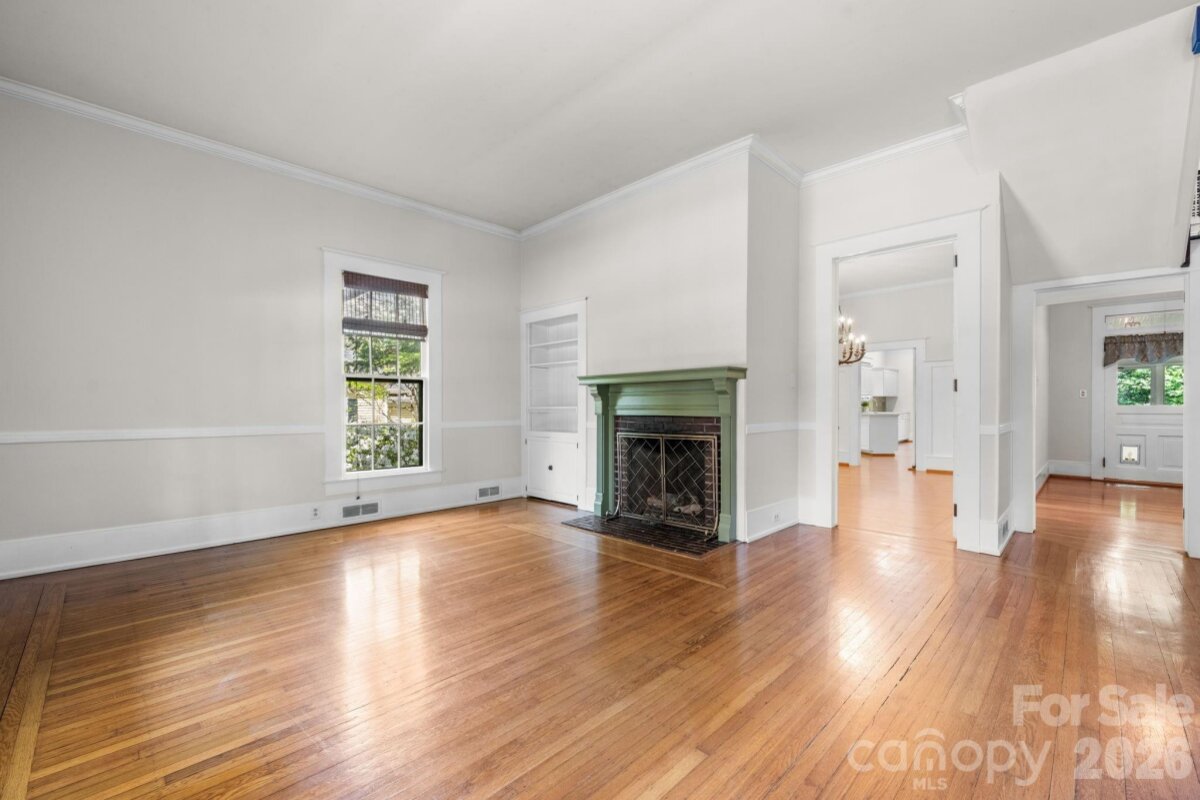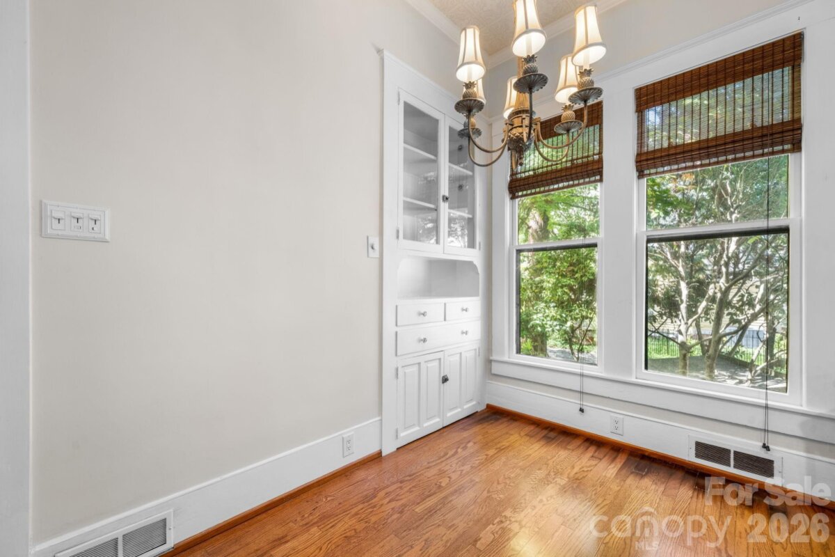 Step into timeless elegance with this charming Victorian home nestled on one of the most sought-after blocks in Downtown Statesville. A welcoming rocking chair front porch sets the tone for relaxed Southern living and invites you to unwind. Inside, you’ll find a gorgeous living room boasting built-ins and a gas log fireplace and a den, a flexible space that could be used as a study or playroom. Beautiful hardwood floors and classic character flow throughout the home. The spacious dining room, large enough to host family and friends, flows seamlessly into a large kitchen featuring double ovens, a gas range, Corian and granite countertops, abundant cabinetry, and a warm eat-in area with built-ins and an eat-at bar, perfect for everyday gatherings. Enjoy year-round entertaining on the lovely screened-in porch complete with a wet bar, all overlooking a fenced backyard ideal for pets, play, or gardening. A detached garage adds convenience and extra storage. The main-level primary suite offers comfort and privacy with three closets and a full bath featuring both a shower and tub. A convenient half bath and a versatile back hallway, perfect for an additional office space or a cozy reading nook, complete the first floor. Upstairs, you’ll find two additional bedrooms and a full bath. Additional highlights include an unfinished basement for even more storage space. Recent updates include a heat pump upstairs and gas water heater replaced in 2021, additional hot water heater replaced in 2022, and gas furnace for downstairs replaced in 2025. This home beautifully blends historic charm with modern functionality in a prime downtown location. Don’t miss your opportunity to make it yours!