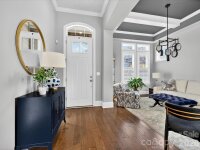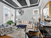 A Designer's personal residence in the heart of Ballantyne, this exceptional home showcased distinctive finishes and thoughtful upgrades throughout. The dramatic open- concept interior features and elegant living room or home office with a beamed ceilings and statement chandelier, setting the tone for refined living. The stunning chef's kitchen is the heart of the home, offering an expansive island with breakfast bar, stainless steel appliances include, a 5 burner gas cooktop with custom range hood, and classic white subway tile extending to the ceiling. A large pantry and convenient laundry room add everyday ease. The dining area flows seamlessly into the light-filled great room with fireplace, opening to a covered porch overlooking a private, fenced backyard- ideal for grilling, entertaining or a quiet retreat. The main- level primary suite features a trey ceiling, generous custom walk in closet, and spa-like bath with an expansive walk-in shower. Upstairs, you'll find two ensuite bedrooms, a spacious bonus and a versatile loft or home office. Additional highlights include HOA-maintained lawn care, plantation shutters, whole- house water filtration, custom wall covering, designer lighting and more. Perfectly located near Ballantyne Village, Ballantyne Bowl, the Ballantyne YMCA, New Wegmans, plus shopping, dining & with easy access to I-485, this designer gem truly has it all. WELCOME HOME