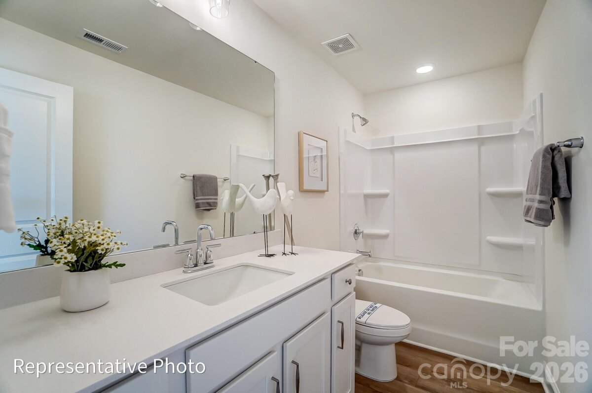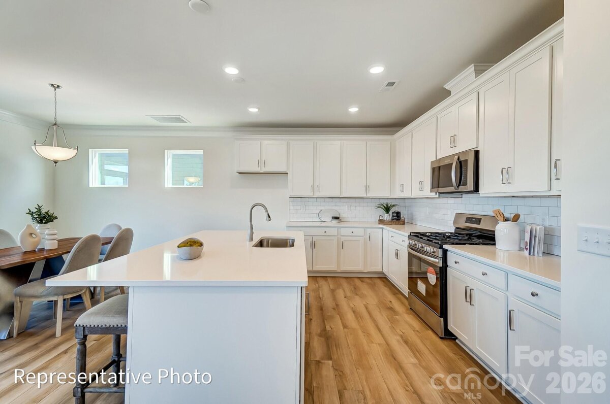 New boutique community in Charlotte near the University area with easy access to dining, retail, and interstates. This 2-story Ellerbe plan offers 3 bedrooms, 2.5 baths and almost 1,900 square feet of living space. The main living area features the family room with a Cosmo, direct-vent, gas fireplace, breakfast area that walks out to a covered porch, and a designer kitchen. The kitchen has white cabinets, quartz counters, tile backsplash, and stainless appliances including a range hood & gas cooktop. Lower cabinets, quartz counters, and backsplash extend into the breakfast area to create extra storage and a buffet for entertaining. The upper floor features the primary suite, two secondary bedrooms, a hall bath with tub/shower combo, loft, and the laundry space. Visit today and find out more about this exciting new community!