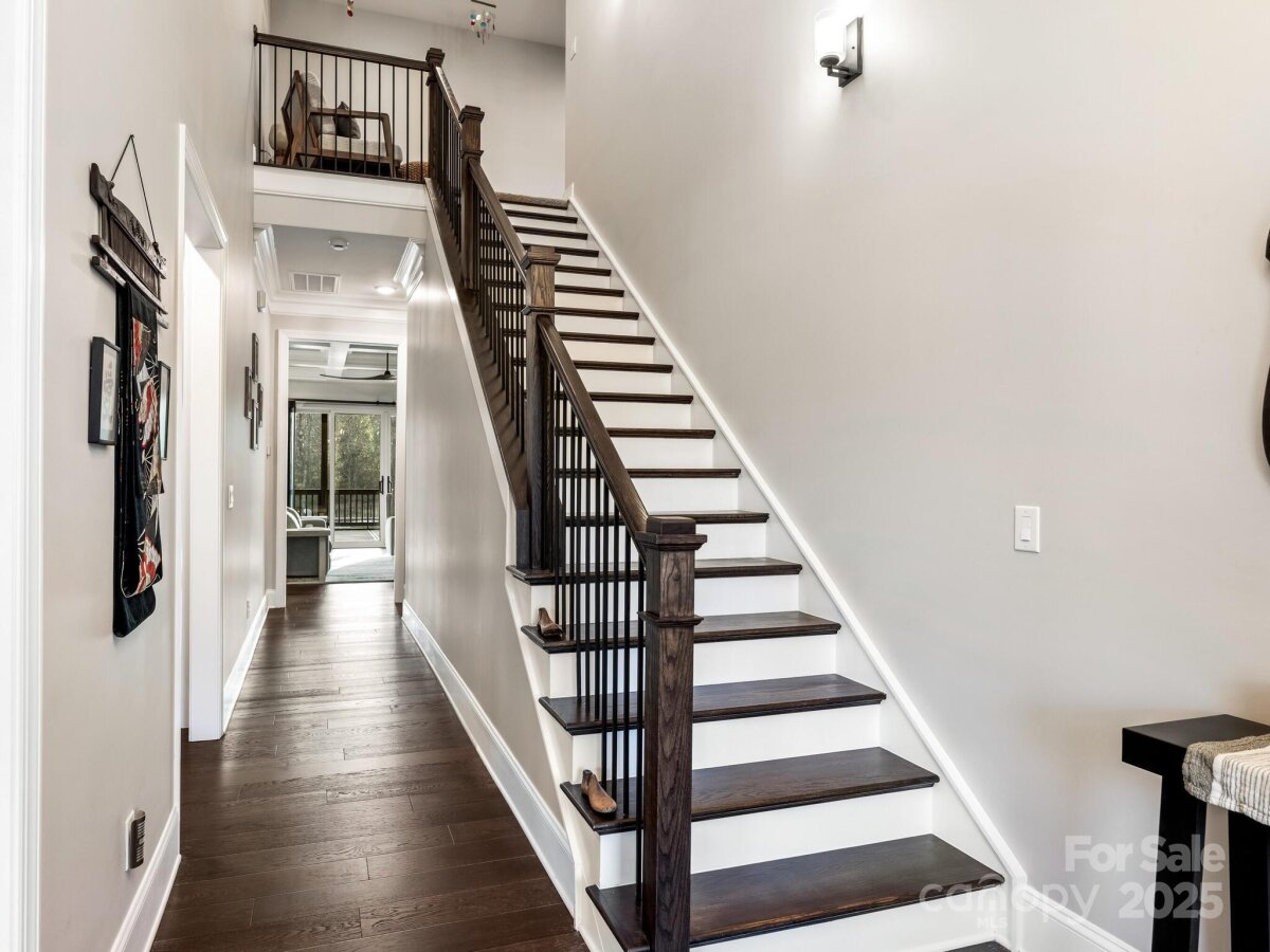 Welcome to The Madison, where elevated design and custom finishes meet comfortable everyday living. This beautiful 1.5-story home is built for seamless entertaining and tranquil retreat. The main level features an inviting open layout that connects the kitchen, dining room, and great room—perfect for hosting and gathering. Quad sliding doors in the great room lead to the oversized screened porch, extending your living space and bringing in beautiful natural light, and there are automated blinds on the first floor. The upscale kitchen featuring stainless steel appliances, a 5-burner gas cooktop, and a convenient pot-filler—all surrounding an oversized island and a walk-in pantry. Bedrooms 2 and 3 are privately situated on the main floor near a full bath for added convenience. The primary suite sits quietly at the rear of the home and feels like a retreat, boasting two separate custom closet systems and a true spa-inspired bath. This retreat features dual vanities, an oversized walk-in shower with rain and hand-held shower heads, and a direct pass-through to the laundry room. Upstairs, the thoughtful design continues. A cozy loft sits at the top of the stairs and opens to a spacious bonus room, perfect for movie nights, hobbies, or a second living area. This level also includes Bedroom 4 with its own walk-in closet, a full bath, and additional attic access for extra storage—an ideal setup for guests or extended family. Outside, the upgrades truly shine, creating an outdoor oasis built for year-round enjoyment. The custom-designed backyard features a paver patio with a gas fire pit and surrounding sitting wall, creating a cozy environment. Enjoy evening ambiance with low-voltage landscape lighting and a rock-edged walkway. Premium features include your very own private putting green and a retractable awning for shade and comfort. A convenient gas stub-out is ready for your future outdoor kitchen. Additional premium features include a whole-house Generac generator, water softener system, and in-ground irrigation, offering added comfort and peace of mind. Garage upgrades include epoxy floors, additional overhead storage, and a double slatwall for hanging tools. The crawlspace is fully encapsulated. Warm, refined, and exceptionally well-cared for, this home is perfect for the discerning buyer seeking true custom touches and high-quality living.