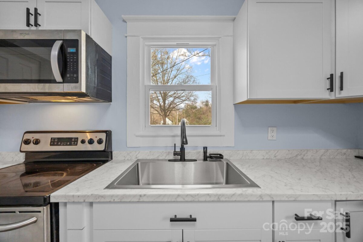 Step into this beautifully renovated bungalow just minutes from vibrant downtown Statesville. This move-in ready single-family home blends modern updates with timeless charm, offering the perfect balance of comfort and convenience. Inside, you’ll find a freshly painted interior complemented by new luxury vinyl plank flooring throughout the main level, creating a seamless and stylish look. The kitchen has been fully remodeled with brand-new cabinets, sleek countertops, and stainless steel appliances—ideal for both everyday living and entertaining. Major system upgrades completed in 2022 provide peace of mind, including a new roof, electrical panel, HVAC, water heater, and plumbing. These thoughtful improvements ensure efficiency and reliability for years to come. The inviting front porch welcomes you home, while the large, level backyard offers endless possibilities—whether you envision a garden, play area, or outdoor entertaining space. Perfectly situated near shopping, dining, and local amenities, this home provides easy access to everything Statesville has to offer. With its blend of modern finishes and classic bungalow character, this property is ready for its next chapter.