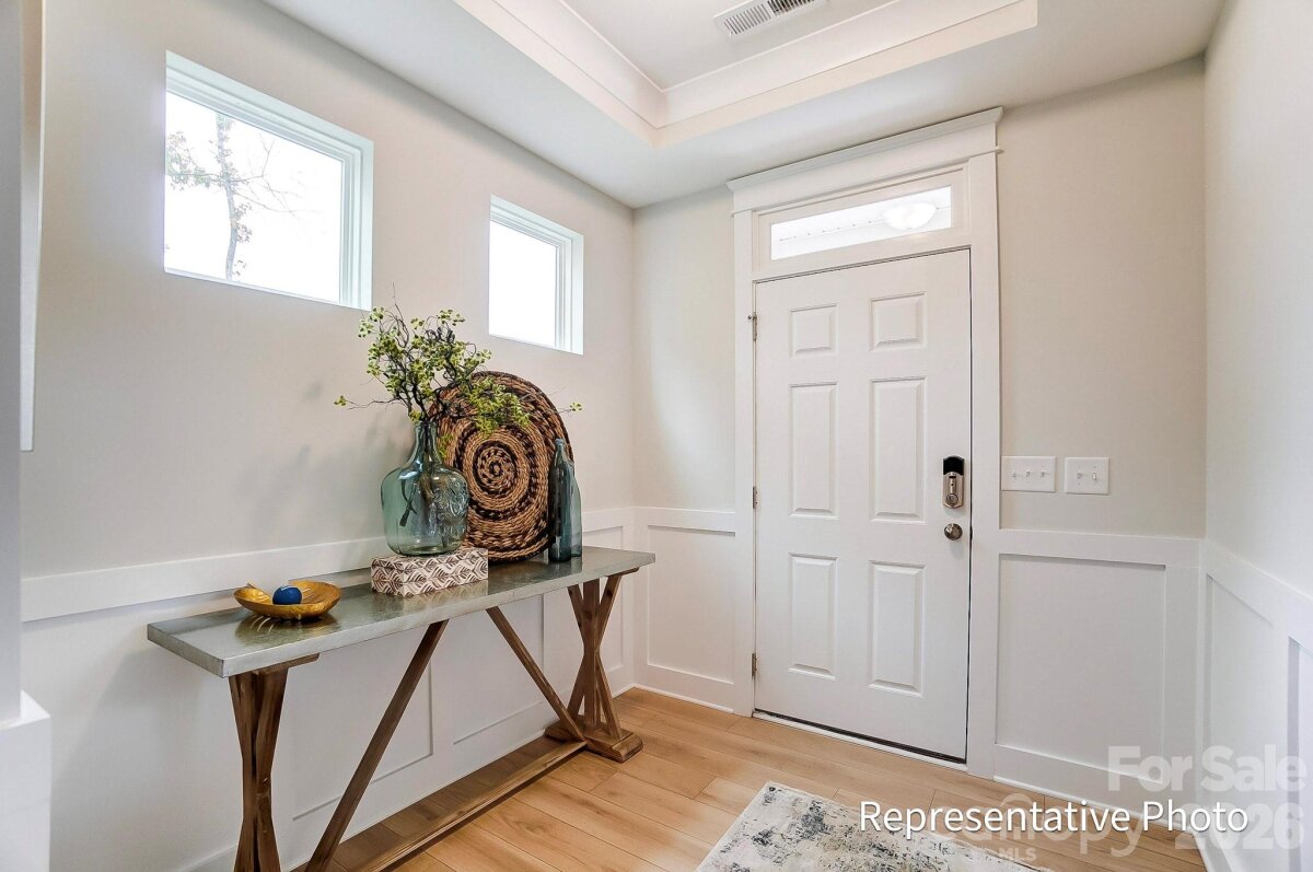 New boutique community in Charlotte near the University area with easy access to dining, retail, and interstates. This 2-story Clayton plan offers 3 bedrooms, 2.5 baths, a rear covered porch, and more than 2,300 square feet of living space. The main living area features the family room with Cosmo gas fireplace & shiplap surround, breakfast area that walks out to covered porch, and a designer kitchen. The kitchen has white cabinets, quartz counters, tile backsplash, and stainless appliances including a range hood & gas cooktop. Upstairs features the primary suite with a luxury shower and large walk-in closet. The upper floor is completed with two more bedrooms, a hall bath with tub/shower combo, loft, and laundry room. All bathrooms have white cabinetry and white quartz counters. Visit today and find out more about this exciting new community!
