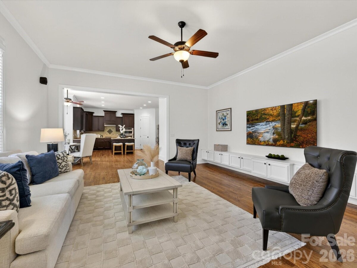 Guest suite on the main level and a 3-car side-entry garage in the highly sought-after Olmsted community. This beautifully maintained 5BR/4.5BA home offers 4,239 sq ft of thoughtfully designed living space, a private backyard, and a floor plan ideal for both everyday living and entertaining. The open-concept main level features a spacious kitchen with a large center island, breakfast area, and a bright great room with gas fireplace and a wall of windows overlooking the landscaped backyard. Freshly painted in neutral tones, the interior feels light, updated, and move-in ready. A private office and main-level guest suite provide excellent flexibility for remote work or multi-generational living. Upstairs, the expansive primary suite offers a sitting area, fireplace, and spa-style bath, along with three additional bedrooms and a large bonus room. Outdoor living is equally inviting with a freshly stained deck and patio—perfect for relaxing or entertaining. The private backyard provides a peaceful retreat. Located in one of Huntersville’s most desirable neighborhoods, Olmsted offers exceptional amenities including a clubhouse, pool, playground, tennis courts, and walking trails. Convenient to shopping, dining, and commuter routes, this home combines comfort, space, and lifestyle in a premier location.