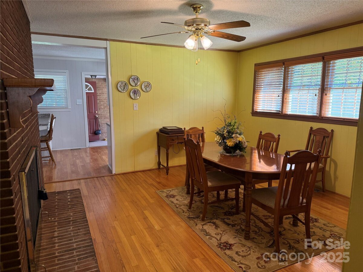 Affordable and adorable describes this well-maintained home. The spacious dining room includes a fireplace with gas logs. The living room has an area that would make a great flex space and has a fireplace. Kitchen with newer cabinet fronts and breakfast bar area. Refrigerator, range and microwave remain. 2 large bedrooms with wooden floors. Updated bathroom including a raised vanity and a newer shower. Wooden and laminate floors throughout. Indoor/outdoor carpet in the laundry room. Patio and a covered bench swing around back. Level lot.