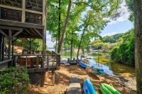 Welcome home to this amazing waterfront home nestled in the heart of Lake Wylie and River Hills neighborhood. Located in a quiet cove right off the main channel so easy access to anywhere on the lake you want to go. This home offers 4 bedrooms, 2 1/12 baths and so many outdoor living spaces to enjoy! Enjoy the babbling brook, the 4 season porch that feels like a tree house overlooking the water, 3 levels of decks - all done with trex decking - covered huge deck for outdoor dining, the dock with lift is even trex for maintenance free. Primary bedroom , luxurious bath and sitting room are on the top floor for dramatic views ! Main level offers 2 story great room with stacked stone fireplace and lots of windows, kitchen, dining room and seating area. The lower level offers 3 bedrooms, bathroom , laundry and access to outside for separate entrance. Could be multi generational living. The home has been meticulously maintained . The lake is calling! Come enjoy the views!
