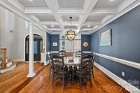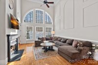 Situated on 1.35 private, wooded acres in the highly coveted Winding Forest subdivision, this elegant two-story residence blends timeless design with refined comfort. Known for its rolling topography, mature trees, and close proximity to Lake Norman, Winding Forest offers a setting that truly defines luxury living. Skippers Landing Safe Harbor Marina is just a two-minute drive, providing effortless access to boating, dining, and lake recreation. The main-level primary suite is a true retreat, featuring a tray ceiling, walk-in closet, dual vanities, soaking tub, and an oversized separate shower. Abundant windows throughout the home fill the interior with natural light and frame peaceful views of the surrounding landscape. A dramatic two-story great room with gas log fireplace anchors the home and flows seamlessly into the luxury kitchen, offering expansive counter space, stainless steel appliances, generous cabinetry, a center island, breakfast bar, and pantry designed for both everyday use and entertaining. Formal dining and breakfast areas add versatility, while a main-level laundry enhances convenience. The upper level offers two bedrooms connected by a Jack-and-Jill bath, an additional bedroom with private ensuite, a spacious flex room, and an additional room ideal for storage. A side-load three-car garage complements the home’s thoughtful design. Outdoor living is elevated by a rear porch overlooking a serene, tree-lined setting, where privacy, natural beauty, and proximity to the lake come together to offer a rare and refined lifestyle that must be experienced in person!
