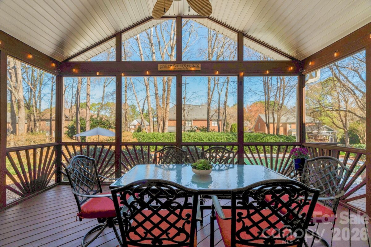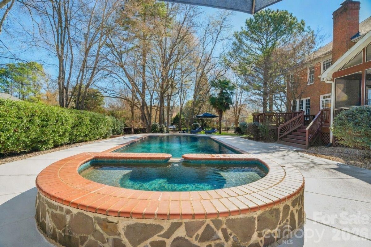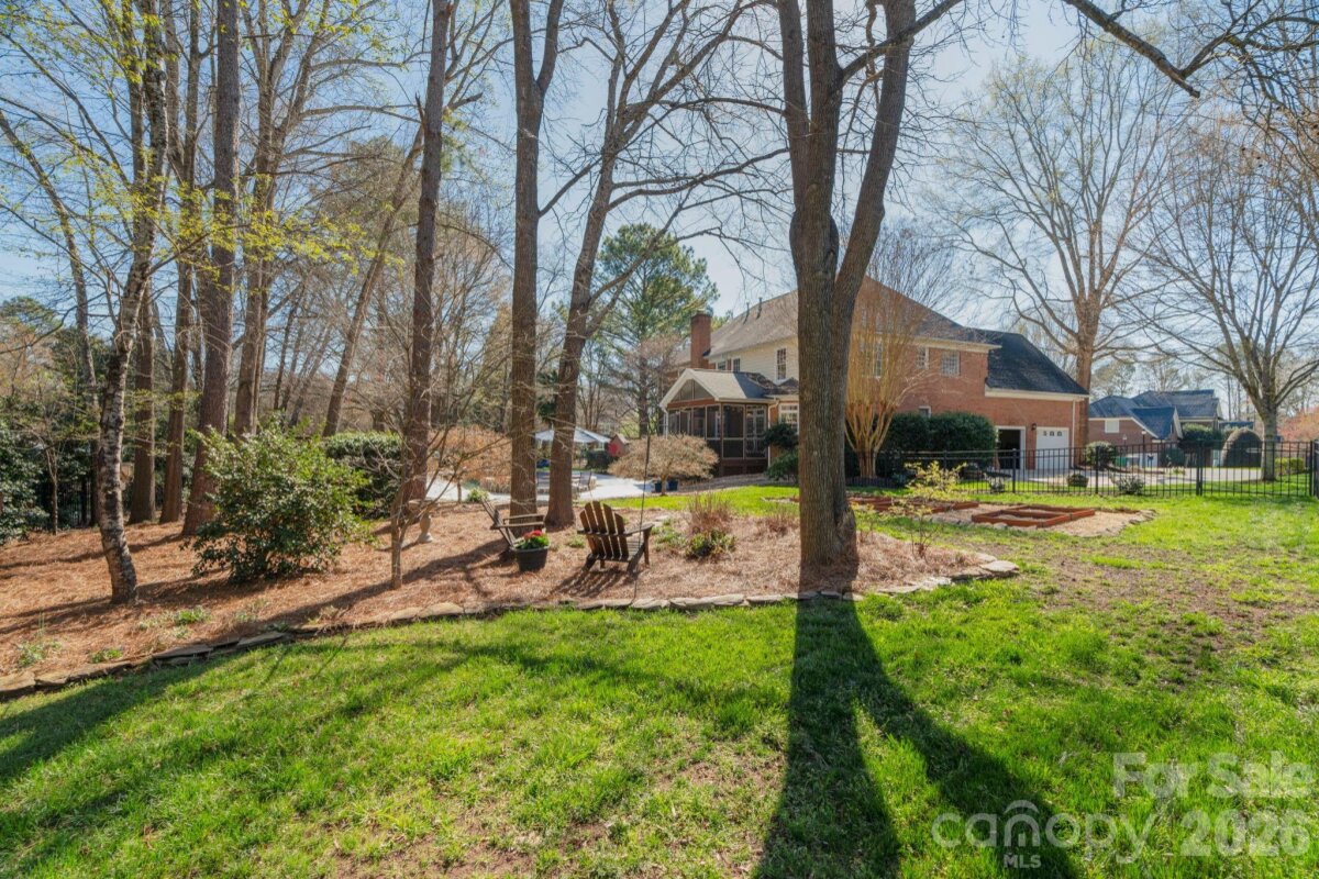 Welcome to 13200 Horsham Court, where everyday living feels like a retreat! Don't miss this beautiful 4 bed, 4 bath home tucked on a charming 0.58-acre cul-de-sac lot, offering exceptional outdoor living, top-rated schools, and an unbeatable South Charlotte location near Providence Country Club and Waverly. Step inside the impressive two-story foyer with gleaming hardwood floors leading to formal dining and living rooms that create an inviting setting for everyday living and special occasions. At the heart of the home, the open-concept family room and kitchen provide seamless flow for gatherings, with plenty of natural light and a cozy fireplace. Designed for effortless entertaining, the home transitions beautifully from indoor to outdoor living. The screened porch and adjoining deck overlook a one-of-a-kind backyard retreat - a private oasis unlike any other with distinct areas for relaxation and enjoyment. Start your morning in the peaceful garden surrounded by mature trees, birdhouses, and Adirondack chairs. Spend afternoons by the sparkling pool and hot tub or unwind in the quiet hammock retreat beneath mature trees. In the evenings, gather around the custom stone firepit with built-in seating - perfect for unwinding or stargazing. Beautiful landscaping frames every view, making the outdoor spaces just as special as the home itself. The luxury owner's suite features a sitting area, spacious bathroom with dual vanities, garden tub, separate shower, closet and adjoining multi-purpose room. Upstairs, generously sized secondary bedrooms and a versatile bonus room offer endless possibilities for a media room, playroom or guests. The first-level office is perfect for a work-from home option or can easily function as a guest bedroom given an adjacent full bathroom. Refinished wood floors, fresh paint, and stylish lighting enhance the bright, updated feel throughout the home. Easy access to I-485, uptown, shopping, entertainment, and more, this rare combination delivers a beautiful house with extraordinary outdoor living, prime cul-de-sac location in a desirable neighborhood, top-rated schools, and unmatched South Charlotte lifestyle. Don't delay - Schedule a Visit Today!