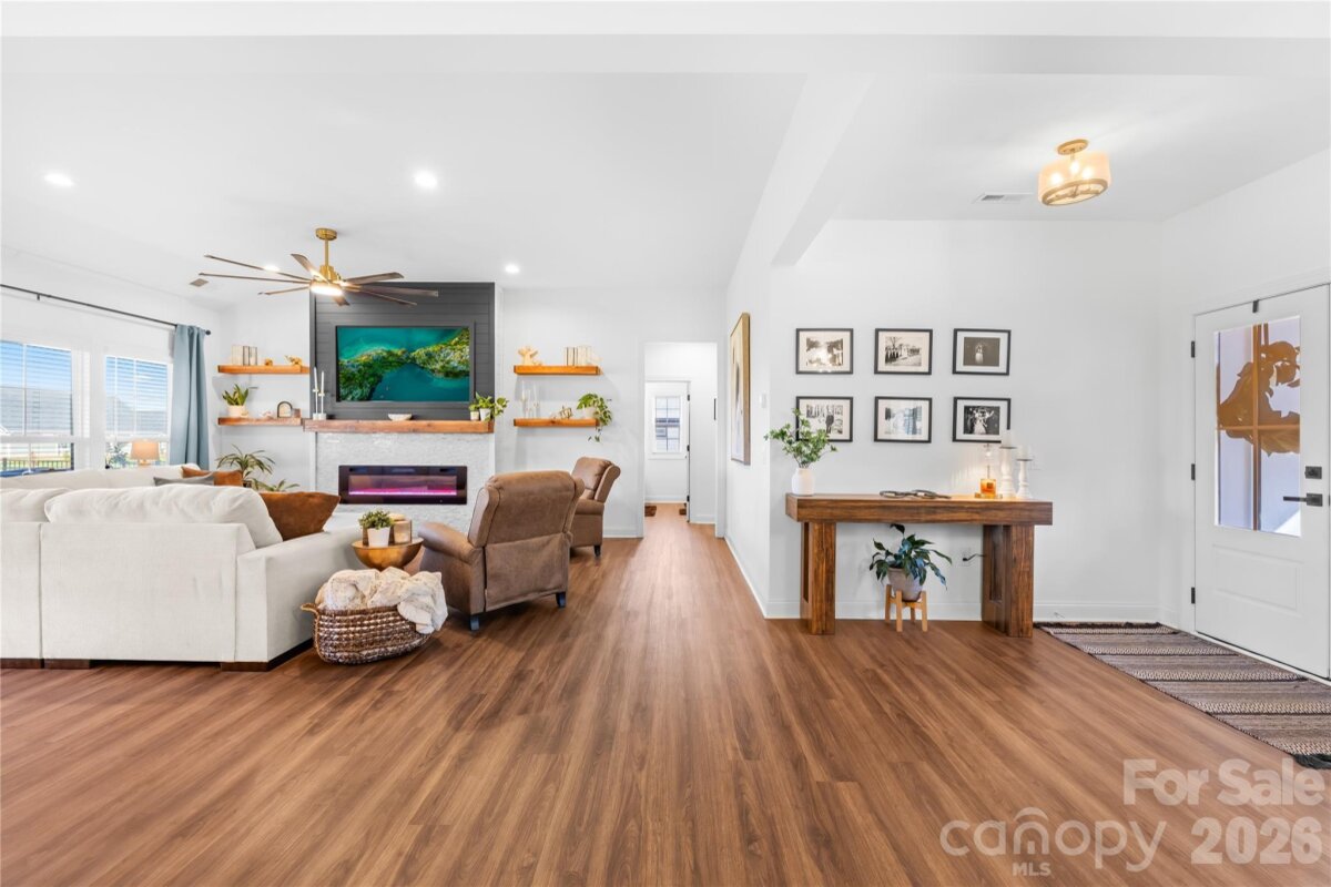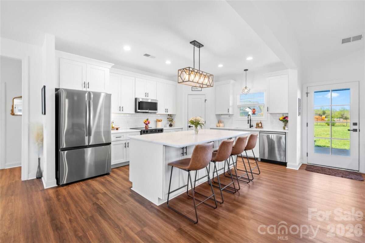 Welcome to this beautifully designed ranch home featuring 3 bedrooms, 2.5 baths, and a versatile flex room with large closet, located in the desirable Yorkshire Farms community in Salisbury. This home offers the perfect blend of comfort, functionality, and modern style—all on one convenient level. Step inside to an inviting open floorplan that seamlessly connects the living, dining, and kitchen areas—ideal for both everyday living and entertaining. The spacious living room features a cozy fireplace, creating a warm and welcoming atmosphere. The kitchen is a true centerpiece, complete with a large island, ample counter space, and plenty of storage—perfect for cooking, gathering, and hosting. The thoughtfully designed layout includes three generously sized bedrooms, including a luxurious primary suite featuring a large primary bathroom and two walk-in closets. The flex room offers endless possibilities as a home office, playroom, or additional space. Outside, enjoy a large fenced-in backyard offering privacy and plenty of room for outdoor activities. The covered patio is perfect for relaxing or entertaining year-round and is equipped with retractable blinds for added comfort and shade. Conveniently located with easy access to Mooresville, Salisbury, and the Lake Norman area, this home offers the perfect balance of peaceful living and nearby amenities. Additional highlights include an oversized garage with extra storage space and thoughtful design features throughout. Don’t miss your opportunity to own this exceptional ranch home in Yorkshire Farms—schedule your showing today!