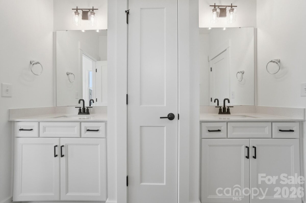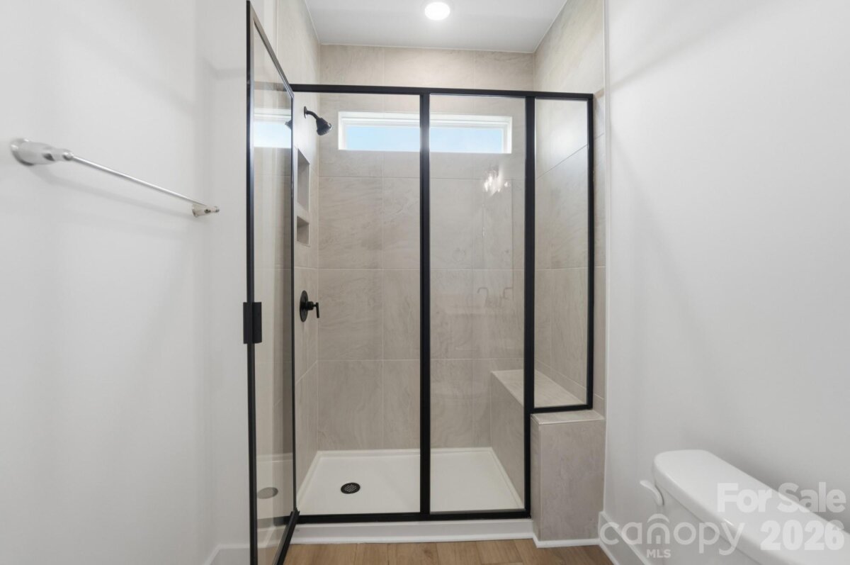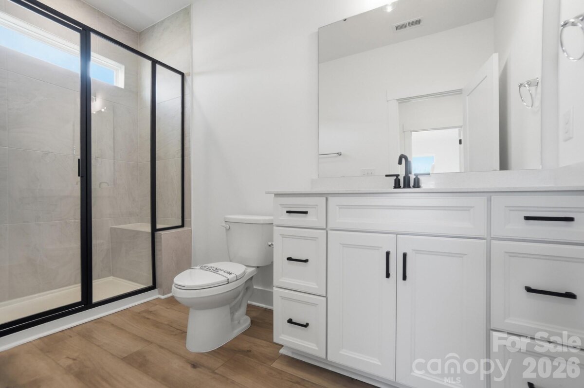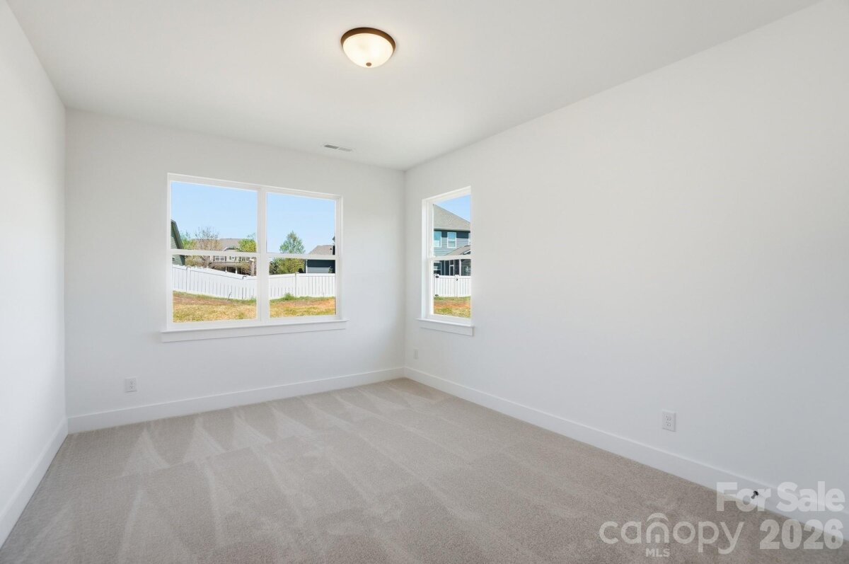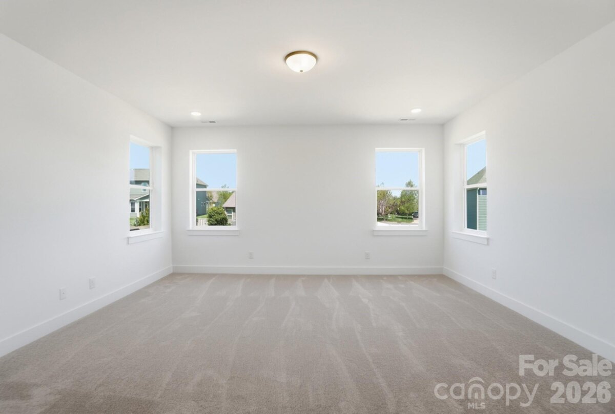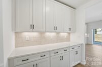 This beautiful Charleston plan has 5 bedrooms, 4 full baths, and almost 3,800 square feet of living space. The main floor includes a guest bedroom next to a full bath with a tiled, 4-ft shower with seat, an office with French doors, formal dining room with tray ceiling, an expanded kitchen with breakfast space and butler pantry, and a family room with a gas fireplace. The kitchen and butler pantry have white cabinets, quartz counters, and a tile backsplash. The designer kitchen includes a stainless range hood and stainless appliances, including a gas cooktop and wall oven & microwave. The upper floor includes primary suite, three secondary bedrooms, a Jack-n-Jill bath, an additional full bath, and a large bonus room with two closets. The primary bedroom has a tray ceiling & a huge walk-in closet, and the primary bathroom has a tub with tile surround and a tiled shower with bench seat. Outdoor space features a covered rear porch along with a paver patio, fire pit, and seating wall. Neighborhood amenities include a pool, dog park, clubhouse & fitness center!