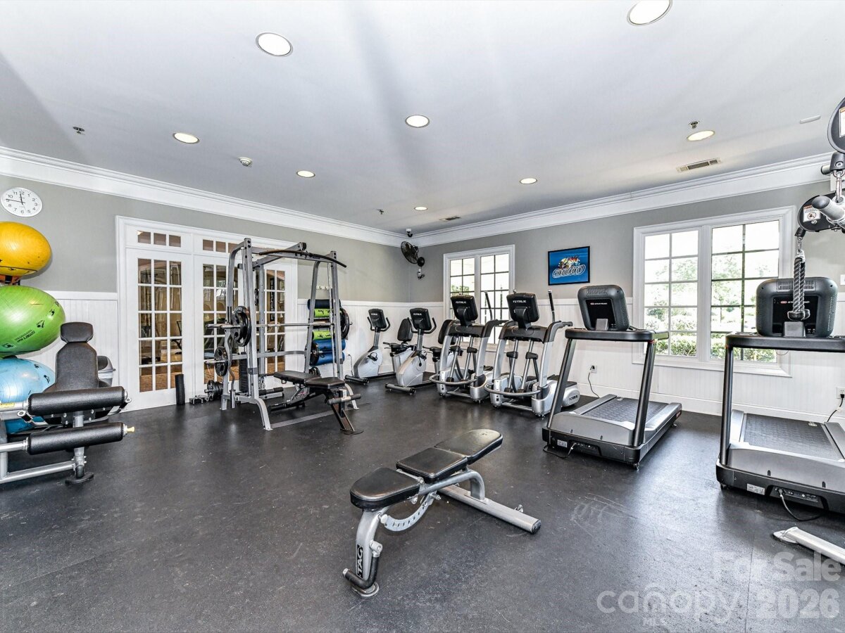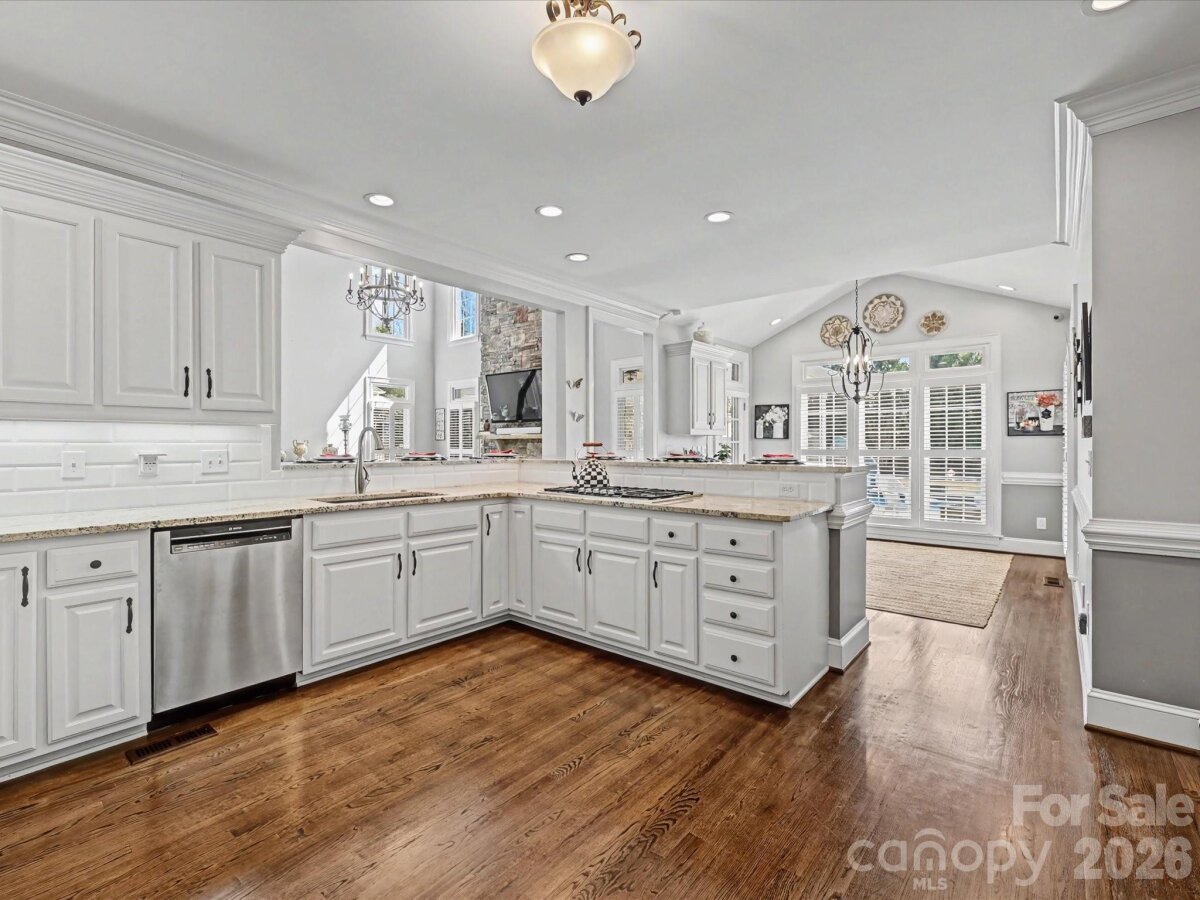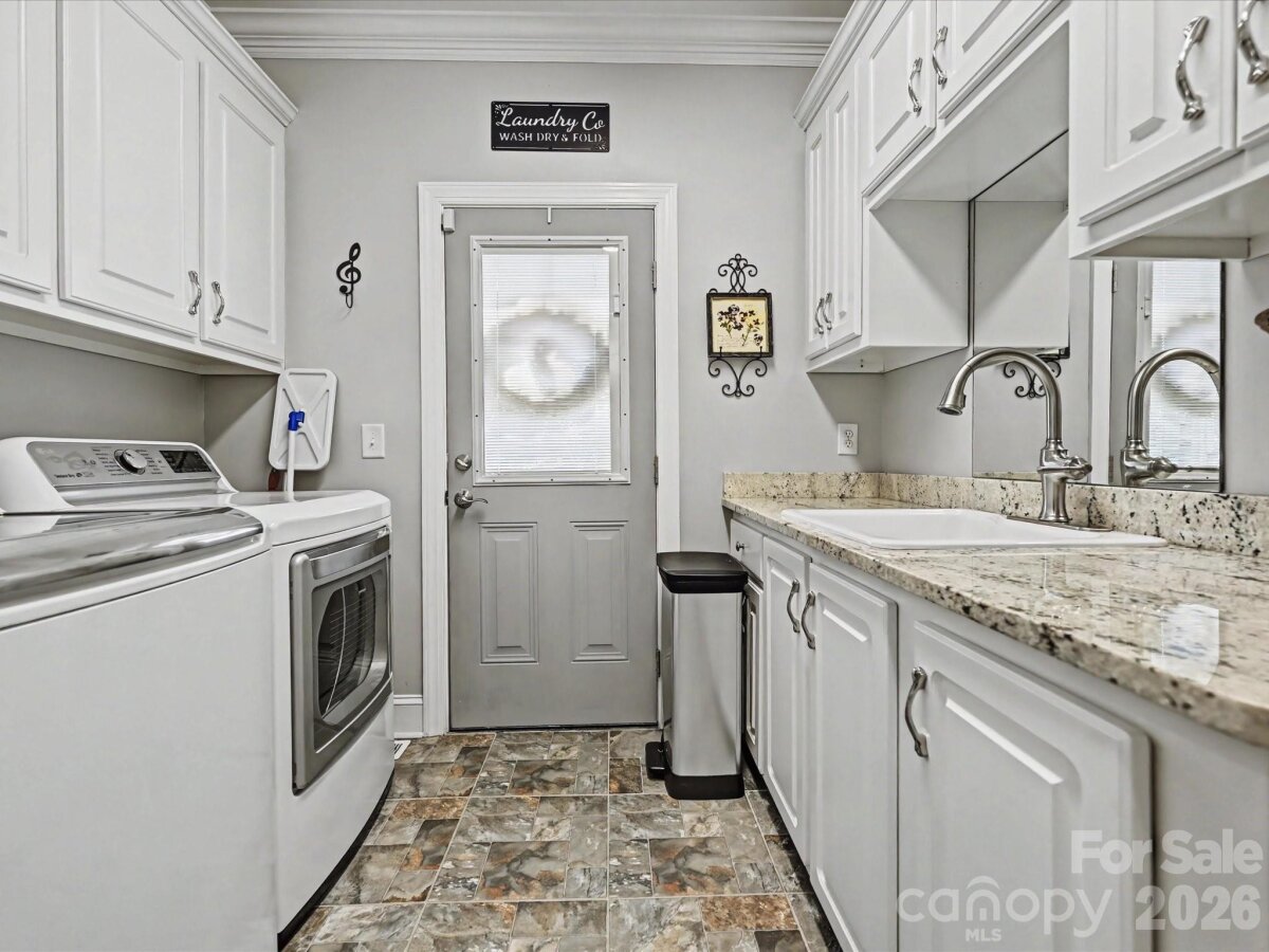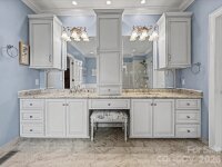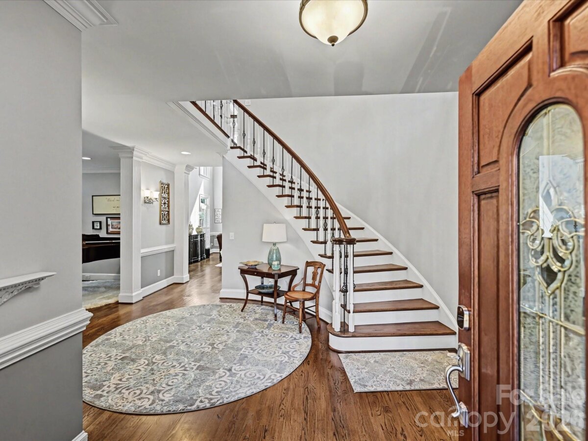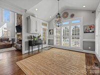 Welcome to 1321 Churchill Downs Drive, a stately all-brick residence tucked inside the fully gated community of Providence Downs. With a circular drive, impressive curb appeal, and a thoughtfully designed layout, this 4-bedroom, 3 full bath, 3 half bath home blends timeless elegance with modern updates, making it perfect for both everyday living and unforgettable entertaining. Step through the grand foyer, featuring classic wainscoting and a stunning turned staircase that immediately set the tone. The main-level primary suite offers a peaceful retreat with a deep tray ceiling, an expansive custom walk-in closet, and a spa-like bath complete with dual vanities, new tile flooring, a Jacuzzi tub, and separate shower. Gorgeous formal living spaces provide room for spectacular entertaining, while the heart of the home is the beautifully updated kitchen and family room. The sellers thoughtfully opened the space for seamless flow and painted the cabinetry crisp white, complementing stainless steel appliances, including double ovens and a gas cooktop. The two-story family room makes a statement with a coffered ceiling, a custom chandelier, and a floor-to-ceiling stone fireplace with a limestone mantle. Plantation shutters run throughout the home, and the windows were all replaced in recent years, adding both efficiency and peace of mind. Upstairs, you’ll find three generously sized bedrooms, one with a private en-suite bath, plus a loft area, walk-in attic storage and a huge, yet cozy, media room/bonus room ideal for movie nights or game days. Outdoor living shines with a level, fenced backyard featuring a saltwater pool with a fun slide, all overlooked by a lovely screened porch. A convenient door from the pool area leads directly into the laundry/mud/half bath which is perfect for guests. A 3-car garage with extra storage space completes the package. Residents of Providence Downs enjoy resort-style amenities including a community pool, clubhouse, playground, tennis courts, walking trails, and more, all within a secure gated setting and zoned for top-notch Marvin schools. This is luxury living designed for gathering, relaxing, and making memories!