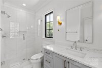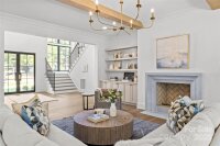 Exquisite custom home drawn by acclaimed architect Robert Foster and masterfully built by Westwood Custom Homes in Charlotte’s coveted Cotswold. Designed for refined living, the home is defined by the soaring two-story foyer with a herringbone inlay, walls of natural light, and thoughtfully curated interiors enhanced by custom trim work throughout. The gourmet kitchen boasts bespoke cabinetry, a 46" Wolf range, and a striking scullery with abundant prep, storage, dual wine fridge, beverage fridge and second dishwasher making hosting a breeze. The Great Room centers on a wood-burning Isokern fireplace with log lighter and opens to a covered outdoor living room with a second fireplace, built-in heaters, and grill—seamlessly connected by a retractable glass wall for year-round indoor/outdoor entertaining. The main-level primary suite impresses with a vaulted ceiling, expansive walk-in closet with integrated washer/dryer closet, and a spa-inspired bath featuring a soaking tub, dual vanities, and zero-entry shower with dual shower heads. A moody main-level office with adjacent 3 piece bath can double as a guest suite. Upstairs, three ensuite bedrooms are complemented by a dedicated laundry room and a versatile flex space with dry bar and beverage fridge. Over the garage, a private suite with 3 piece bath adds nearly 400 SF—perfect for guest overflow, au pair, or secondary home office. 1321 Ferncliff blends curated features and exceptional craftsmanship to deliver elevated living in one of Charlotte’s most desirable neighborhoods.