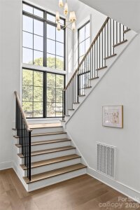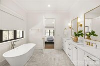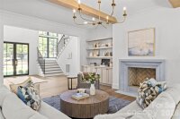 Drawn by acclaimed architect Robert Foster and built by Westwood Custom Homes, this Old Cotswold stunner delivers refined, modern sophistication in one of Charlotte’s most coveted neighborhoods. A soaring two-story foyer with hardwood herringbone inlay sets the tone, complemented by bountiful natural light, curated interiors, and custom trim throughout. The chef’s kitchen features bespoke cabinetry, a 46" Wolf range, and a show-stopping scullery with exceptional storage, wine and beverage fridges, and a second dishwasher—designed for those who love effortless entertaining. The Great Room is anchored by a wood-burning Isokern fireplace and opens through a retractable glass wall to a covered outdoor living space complete with a gas fireplace, built-in heaters, and a gas grill. A glamorous pool with an integrated spa creates seamless year-round indoor/outdoor living. The main-level primary suite offers a vaulted ceiling, oversized windows with custom window treatments, and a spa-inspired ensuite with a soaking tub, dual vanities, and a zero-entry shower. The expansive walk-in closet includes an integrated washer and dryer, completing the retreat. A main-level office with an adjacent bath doubles as a guest suite, while the second level offers three ensuite bedrooms and a flexible living space with a dry bar and dedicated half bath. The large laundry room adds ideal everyday functionality. A nearly 400-square-foot private suite over the garage provides additional space for guests or a secondary office. 1321 Ferncliff delivers elevated design, exceptional craftsmanship, and true resort-style living.