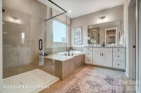 This Colfax plan is "suite"! This 2-story home offers a guest bedroom with an ensuite bath on the main and the primary suite plus another ensuite bedroom upstairs. Plenty of options for everyone with a total of 5 bedrooms, 4.5 baths, and 3,300 square feet of living space. The main floor includes the family room with gas fireplace, a dining room with tray ceiling, butler pantry, and office with French doors. The designer kitchen has white cabinets with a contrasting grey island, quartz counters, tile backsplash, farmhouse sink, stainless range hood, and stainless appliances, including a gas cooktop. The upper floor has 9-foot ceilings and includes the primary suite with tray ceiling and luxury bath, three secondary bedrooms (one with an ensuite bath), a loft, and laundry room with upper and lower cabinets. The rear of the home features a covered porch along with a paver patio, firepit, and seating wall. Neighborhood amenities include a pool, dog park, clubhouse & fitness center. Visit today to find out more about this wonderful home!