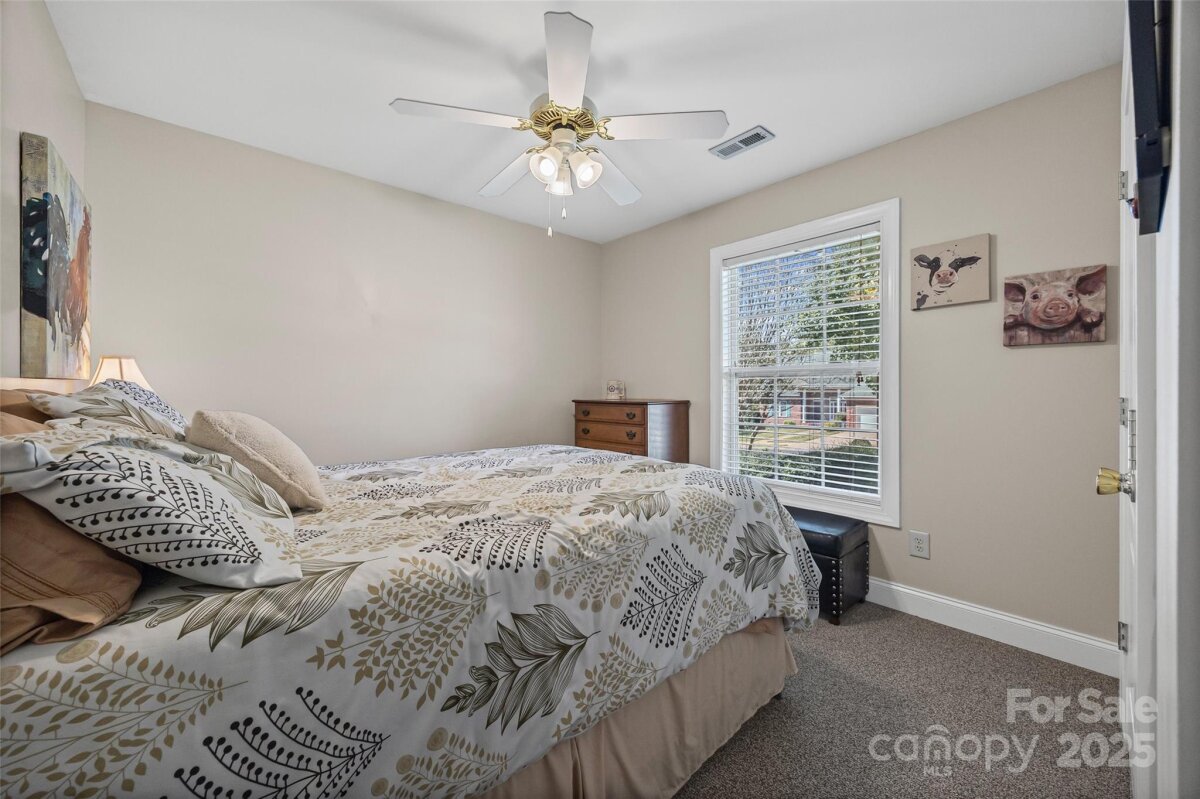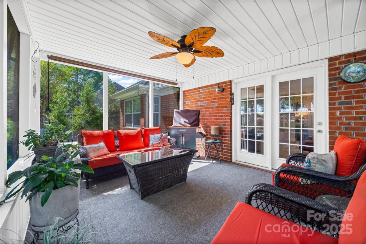 Welcome home to Grey Fox Forest. Step onto the charming covered front porch of this beautifully maintained, full brick home in desirable Grey Fox Forest neighborhood. This one-story home with finished bonus room over the garage offers 3 bedrooms, 2 full baths, and lots of thoughtful updates throughout. Inside you will find beautiful hardwood floors with a updated kitchen and sleek stainless steel appliances, crisp white cabinetry, and an open floor plan that flows seamlessly into a cozy living room with vaulted ceiling and gas-log fireplace, perfect for relaxing and entertaining. The primary suite features new carpet, a lovely bay window seat and storage beneath, walk-in closet and a renovated bath with a large walk-in shower, steam-free lighted mirrors and an electric bidet toilet for modern comfort. Two additional bedrooms are spacious size and new carpet. Second bath has been refreshed with new tile, a beautiful vanity, and a new toilet. The large bonus room over the garage offers flexibility use. Separate laundry room with a utility sink. The 2 car garage boasts epoxy floors, a new garage door, a vent fan on thermostat. Solar fan on the roof for added efficiency in the attic only. The crawl space is protected with Dry-Pro and sump pump. Enjoy the outdoors on the three-season screened-in back porch, complete with a dog door overlooking a fenced in backyard with additional fencing for a small dog. Other updates include a new HVAC system in 2024 and gutter guards for low maintenance living. This home blends comfort, style, and practical upgrades- ready for you to move in and enjoy.