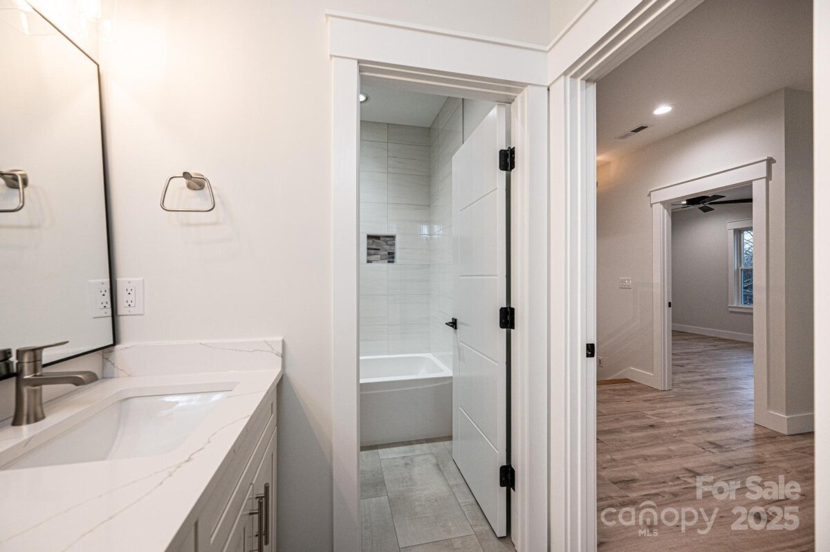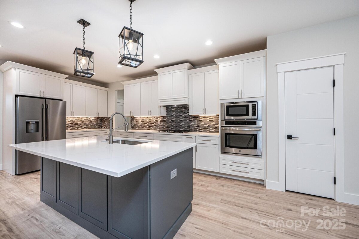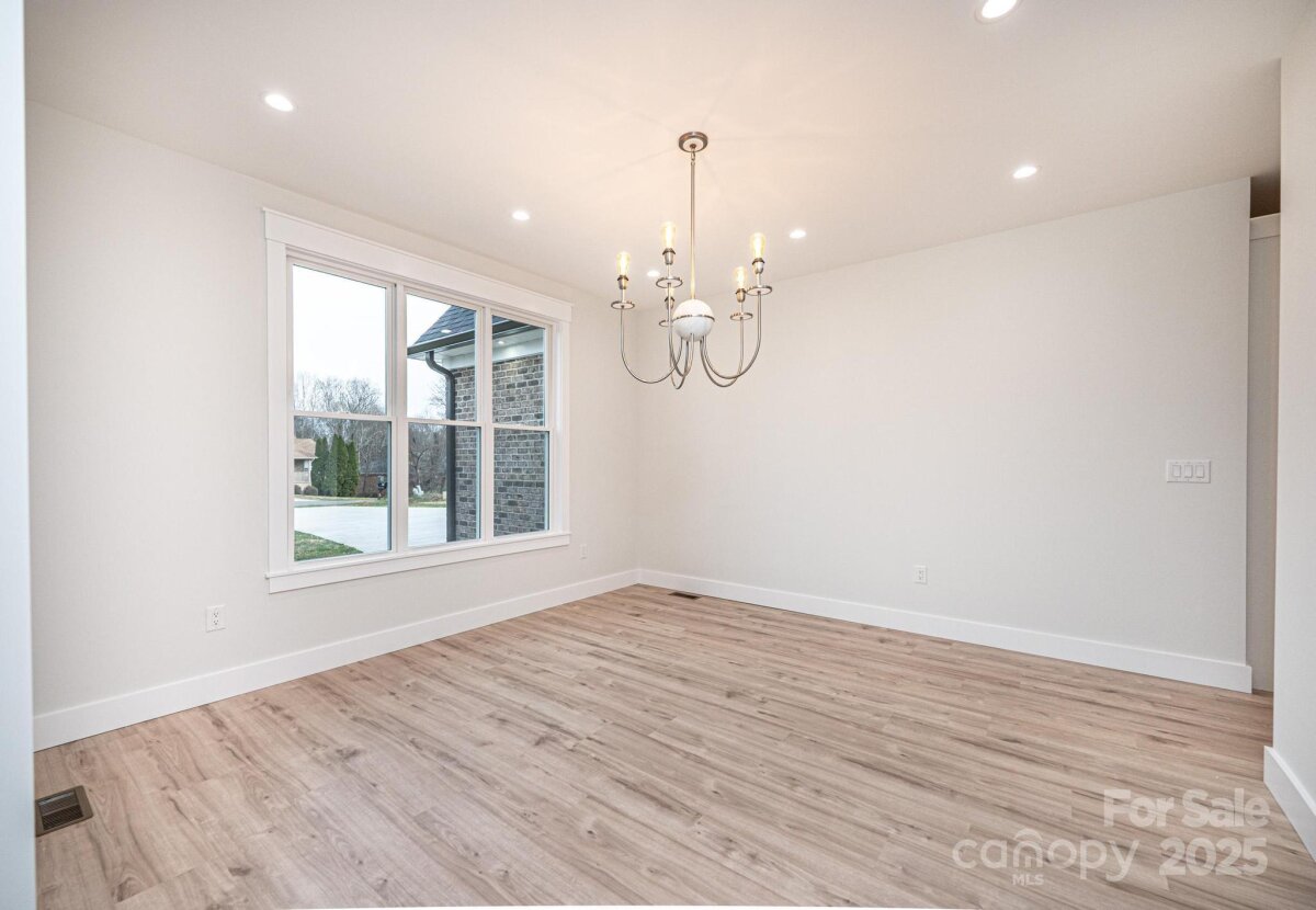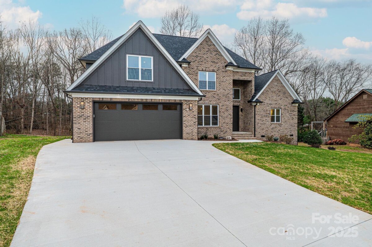 Beautiful new construction just completed in NE Hickory’s desirable North Pines Subdivision! This stunning 1.5-story all-brick home offers timeless curb appeal and a thoughtfully designed split-bedroom floorplan. The private primary suite with en-suite bath is tucked away for comfort, while a spacious guest suite with full bath sits on the opposite side of the home, perfect for visitors or multi-generational living. The heart of the home is the chef’s kitchen, featuring quartz countertops, tile backsplash, soft-close cabinetry, and premium stainless appliances including a gas cooktop, oven, microwave, dishwasher, and refrigerator. The kitchen flows seamlessly into the breakfast area and the impressive great room, highlighted by soaring two-story coffered ceilings and a modern fireplace, creating an open and inviting space ideal for entertaining. A large kitchen island with breakfast bar and a formal dining room add both function and elegance, making this home perfect for gatherings both large and small. Upstairs you’ll find the third and fourth bedrooms, a full hall bath, and a generously sized FROG (Finished Room Over the Garage) that offers flexible space for a home office, media room, or playroom. Quality craftsmanship, designer finishes, and energy-efficient construction are evident throughout, with attention to detail that ensures both beauty and functionality. Luxury Vinyl Plank flooring, abundant natural light, and modern design touches elevate the home’s interior, while the exterior showcases classic brick construction and a welcoming presence. A two-car garage provides ample storage plus there is a tall crawlspace area perfect for a zero-turn mower and yard tools. The spacious level yard offers space for outdoor enjoyment. Located in the sought-after North Pines Subdivision, this home combines convenience and comfort with easy access to schools, shopping, dining, and major highways, while still providing a quiet neighborhood feel. Move-in ready and built with quality you can trust, this property is a must-see. Come and show this beautiful new home in NE Hickory—your buyers will not be disappointed! Closets are currently do not have any shelves in them so that the buyer can determine the layout of their choice for shelving.