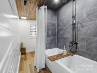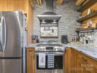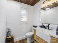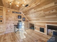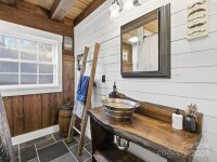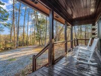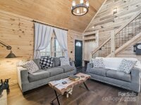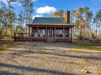 This fully renovated two-bedroom, two-bath 1.5-story log cabin showcases an exceptional blend of rustic character and upscale luxury on a private, wooded two-acre lot. Rich slate, laminated circular-sawn hardwood and pine floors highlight the cabin's timeless charm, while the great room's vaulted ceilings and striking floor-to-ceiling stone wood-burning fireplace create a warm, dramatic centerpiece. The beautifully updated eat-in-kitchen features leathered granite counters, stainless appliances, a pot filler and thoughtful custom touches that elevate everyday living. A cozy loft adds extra versatility, complementing two inviting bedrooms and two updated baths, including one with a relaxing spa-like soaker tub with shower. Special handcrafted finishes and a durable metal roof enhance style and longevity. A large deck and welcoming front porch with rocking chairs and a swing provide serene outdoor living, making this turnkey retreat ideal for a luxurious rustic getaway or short-term rental. Seller hired crew to remove trees damaged by Hurricane Helene the week of March 30 and is no longer offering the seller credit for cleanup.