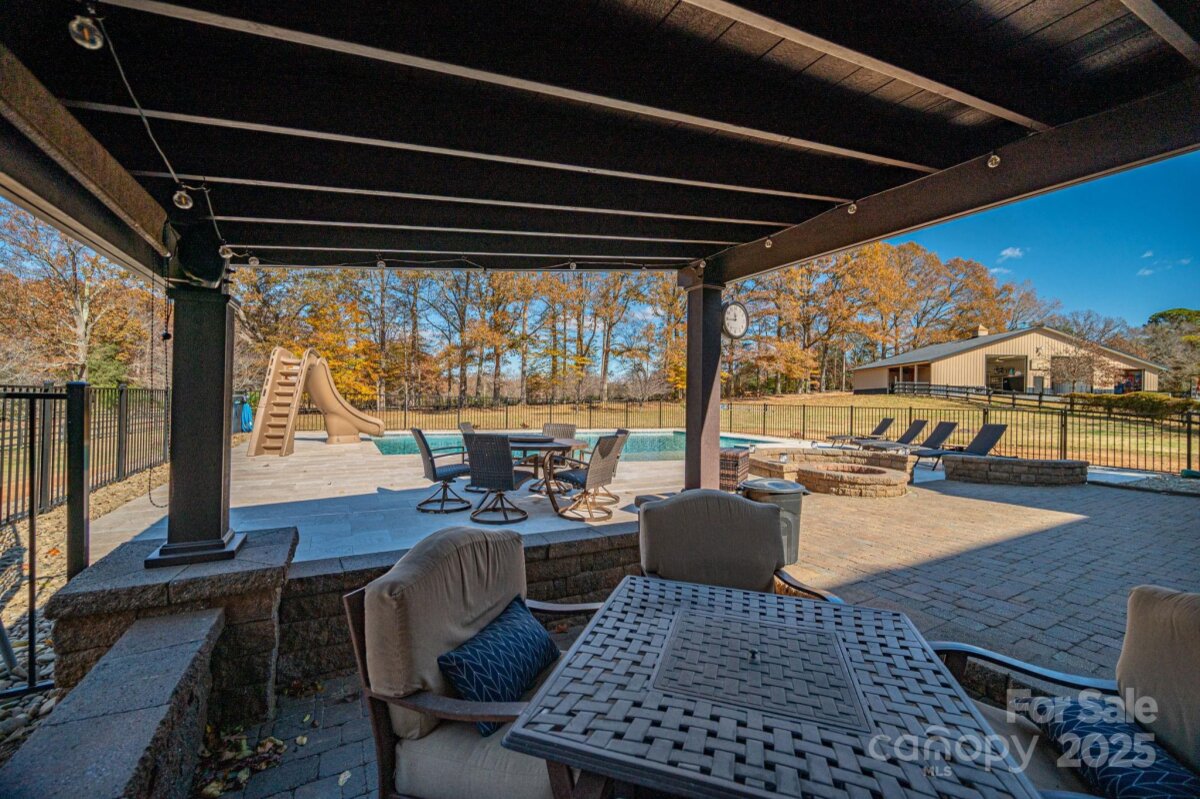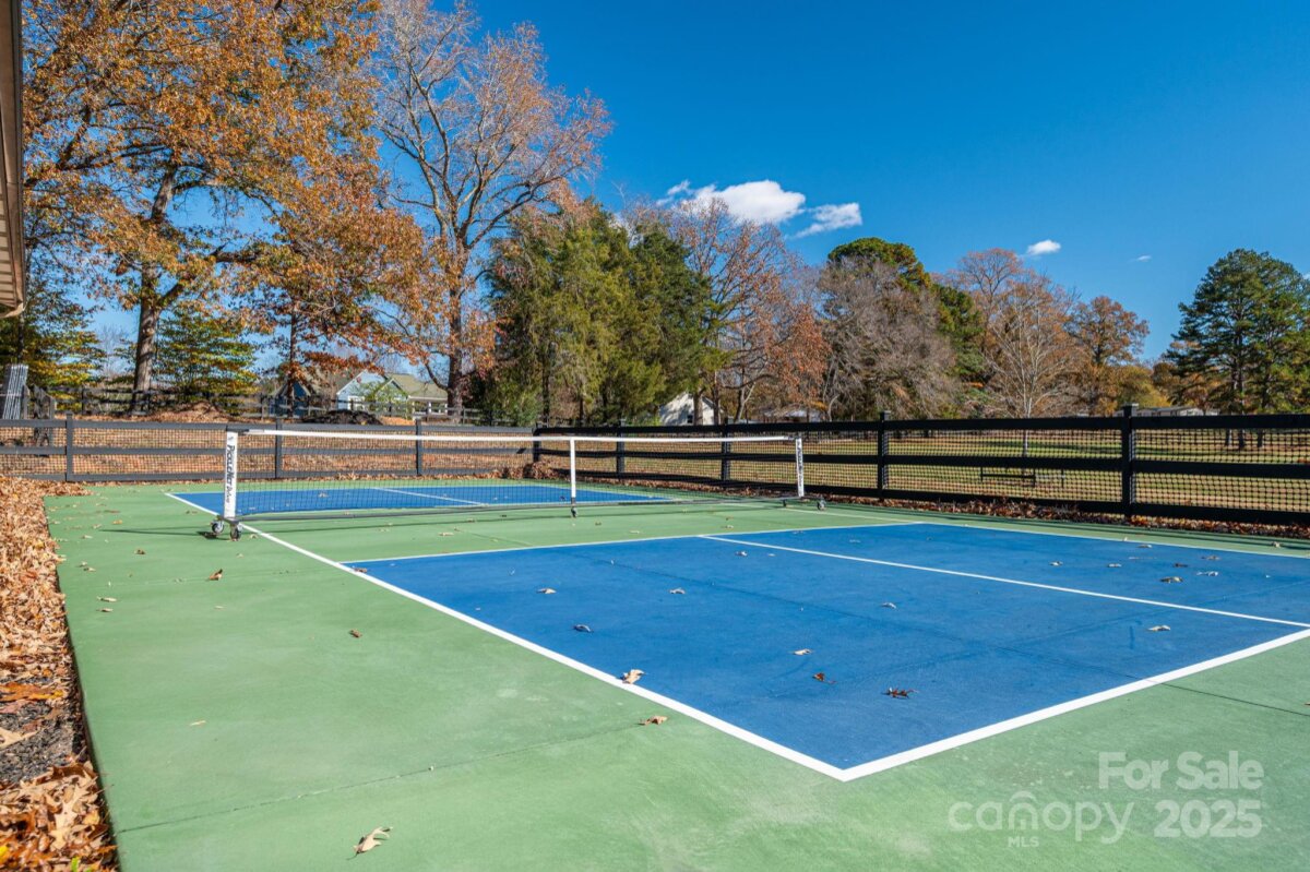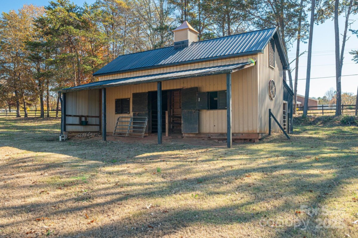 Welcome to Huncoat Hollow this rare opportunity where luxury meets functionality and no details were spared. From the moment you enter the electric gate at Huncoat Hollow Lane peace surrounds you just like the treescape of this 8 acre estate. Following the circle drive you or your guests can make the grande entrance with a view of the front door and porte cochere before settling into the back entrance garage or large parking area or better yet you could stop to easily unload groceries in a covered space with easy access to the kitchen. If you were aiming to park that motorhome, large boat or the countless toys or vehicles you may want to stay out of the elements you would take the first drive entrance which gives you the perfect view of the stables and quaint natural area with a right turn into the 40x50 shop/barn/garage or a left turn directly into your oversized 3 bay garage attached by the porte cochere. The shop has a large open area that will not only accommodate a motorhome for parking but also has both water and sewer hookups. It also has a full bathroom, its own hot water heater, 200 amp service, 14' garage doors, gun safe and security system. Outside of the shop you will find a 20x50 lean-to on one side that is partially closed in for your tractor, four wheelers etc, a 17x50 additional separate garage space and a standard size pickle ball court on the other side. The possibilities are endless here. Inside the 4100 sq ft home you will find a fabulous layout with a total of 4 bedrooms, 2 of which are on the first floor (including the primary) and both have en-suite full baths. Upstairs you will find 2 additional bedrooms with a jack-n-jill bathroom. Upon entry you will be enamored with the Brazilian cherry hardwoods throughout which are in wonderful condition, updated lighting that give you a warm cozy feel, 2 fireplaces one located in the living room with gas logs and the other located in the keeping room with a gas fire starter but that burns wood. The chef's kitchen has a large Jenn-Air gas stove with built in exhaust, a microwave drawer, Jenn-Air oven and warming oven, brand new LG french door fridge, functional island with wine cooler and huge pantry. Right off of the kitchen is the open dining/living area that have views of the screened in back porch and brand-new (less than 90 days old) salt water pool. The screened in porch has brand new screens and frames and wood flooring. The gorgeous heated and cooled 20x40 pool (exclusive of the tanning ledge) is very low maintenance with its auto-fill feature, cleaning robot and travertene stone surround. The things you can't see easily but must be noted are crawl space encapsulation, 2 brand new heat pumps for downstairs and a new Rinnai recirculating hot water heater. Whether looking for a hobby farm or just a private space in close proximity to Charlotte with highly rated public schools to call home you will find 132 Huncoat Hollow Lane is what you have been searching for without having the headache of custom building it yourself.