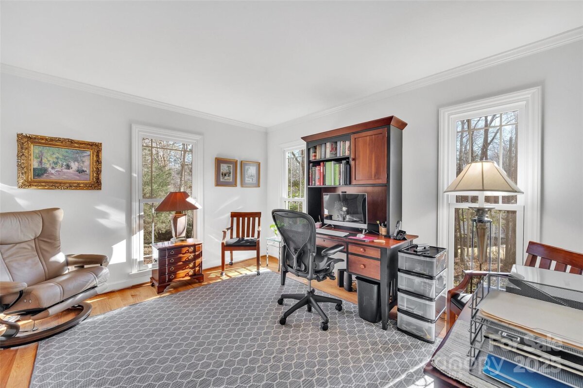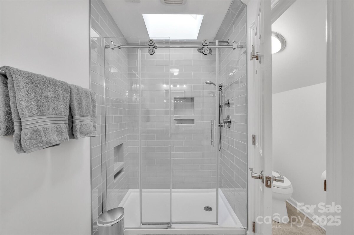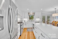 Great opportunity to own a wonderfully updated, original owner, full brick home located in the highly desirable neighborhood of Burtonwood. Upgrades include: beautiful wood floors on the main level, a bright & airy open-concept chef's kitchen with quartz countertops, dual fuel gas range with gas cooktop, electric oven, stainless steel appliances and a microwave drawer. In addition, there is recessed lighting, soft close cabinets/drawers and a large center island. The spacious primary bedroom features an updated ensuite bathroom with a convenient walk-in shower and ceramic tile flooring. The 2nd bedroom upstairs has a walk-in closet and a very convenient updated ensuite bathroom. This bathroom can also be used by occupants of the large 3rd bedroom. The energy-efficient windows by Andersen were installed in 2018. The HVAC was installed in 2014 and is maintained by Morris-Jenkins. In 2021 the architectural roof was installed. This home has an abundance of closets and storage spaces, lots of privacy, a fenced-in backyard, and is surrounded by lush mature landscaping and a heavy tree canopy. Enjoy your surroundings year round, either indoors in the sunroom or outside on the large, recently stained deck built by Archadeck. There is also an existing natural gas line for a grill. Easy access to the main roads in and out of town as well as nearby South Park, Cotswold, and Plaza Midwood. There is also a community park and the very popular Greenway just minutes away.