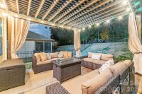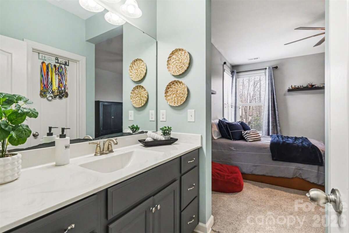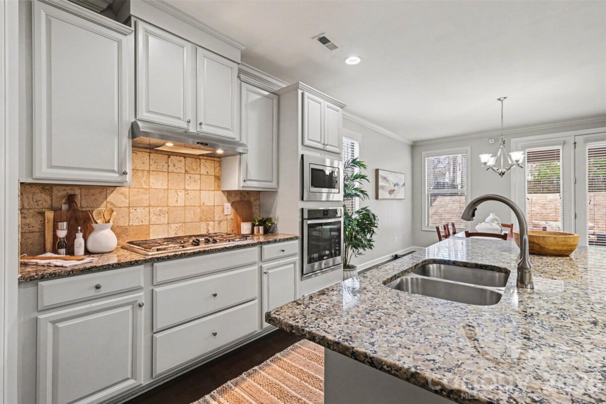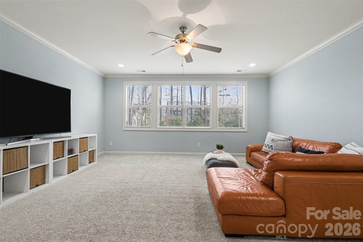 Fresh updates and thoughtful improvements make this beautifully maintained home an exceptional opportunity in the highly sought-after Lake Ridge community of Tega Cay. The sellers have recently invested nearly $20,000 in brand-new sod in both the front and back yards, creating refreshed landscaping that will green up beautifully as spring arrives. Sophisticated and move-in ready, this home blends modern elegance with everyday comfort while offering access to Lake Ridge’s resort-style amenities, vibrant community events, and award-winning schools. Ideally located near shopping, dining, I-485, the airport, Catawba Park, and Lake Wylie. A welcoming covered front porch and impressive two-story foyer open to bright, inviting living spaces highlighted by hardwood floors and 9-foot ceilings. The gourmet kitchen features white cabinetry, granite countertops, stainless steel appliances, and a large center island flowing into the breakfast area and spacious great room with a stunning floor-to-ceiling stacked stone fireplace—perfect for entertaining. A main-level bedroom and full bath provide flexible space for guests, a home office, or multigenerational living. Upstairs you’ll find a large bonus room with custom barn doors, a Jack-and-Jill bath with dual vanities, a private ensuite bedroom, and generously sized secondary bedrooms—all with walk-in closets. The primary suite is a relaxing retreat featuring a tray ceiling and spa-inspired bath. The oversized garage offers epoxy flooring, built-ins, and abundant storage. Outdoor living truly shines here. The extended patio with pergola overlooks a fenced backyard featuring a level entertaining/play area off the patio, a gradual slope leading to another spacious upper play area, and additional property extending beyond the fence line—providing flexibility, privacy, and room to enjoy. Stylish, functional, and located in one of the area’s most desirable communities—this Lake Ridge home is ready to welcome its new owners.