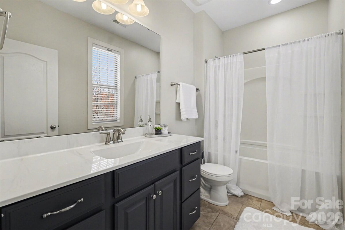 Fresh updates and thoughtful improvements make this beautifully maintained home an exceptional opportunity in the highly sought-after Lake Ridge community of Tega Cay. The homeowners have recently invested nearly $20,000 in brand-new sod in both the front and back yards, creating refreshed landscaping that will green up beautifully as spring arrives. Sophisticated and move-in ready, this home blends modern elegance with everyday comfort while offering access to Lake Ridge’s resort-style amenities, vibrant community events, and award-winning schools. Ideally located near shopping, dining, I-485, the airport, Catawba Park, and Lake Wylie. A welcoming covered front porch and impressive two-story foyer open to bright, inviting living spaces highlighted by hardwood floors and 9-foot ceilings. The gourmet kitchen features white cabinetry, granite countertops, stainless steel appliances, and a large center island flowing into the breakfast area and spacious great room with a stunning floor-to-ceiling stacked stone fireplace—perfect for entertaining. A main-level bedroom and full bath provide flexible space for guests, a home office, or multigenerational living. Upstairs you’ll find a large bonus room with custom barn doors, a Jack-and-Jill bath with dual vanities, a private ensuite bedroom, and generously sized secondary bedrooms—all with walk-in closets. The primary suite is a relaxing retreat featuring a tray ceiling and spa-inspired bath. The oversized garage offers epoxy flooring, built-ins, and abundant storage. The extended patio with pergola overlooks a fenced backyard featuring a level entertaining/play area off the patio, a gradual slope leading to another spacious upper play area, and additional property extending beyond the fence line—providing flexibility, privacy, and room to enjoy. Stylish, functional, and located in one of the area’s most desirable communities—this Lake Ridge home is ready to welcome its new owners.