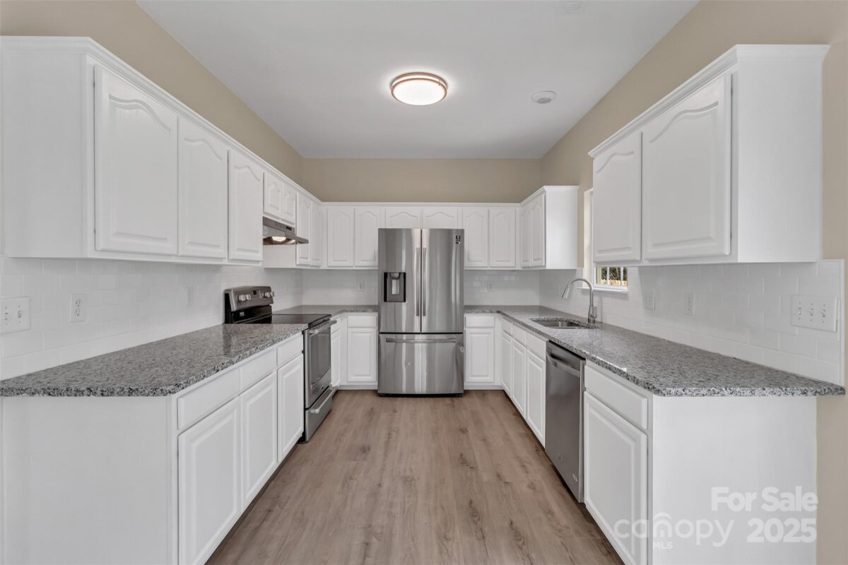 Welcome home! Opportunities like this are rare—a truly move-in ready home in the Fort Mill School District at this price point! This charming ranch has it all. Recently refreshed with thoughtful TLC, this beauty is full of character and ready for its new owner. Step inside to a cozy living room featuring a gas fireplace, ceiling fan for year-round comfort and lots of natural light. Check out the updated kitchen with white cabinets, granite countertops, white tile backsplash and stainless steel appliances. You'll love making culinary specialties in this refreshed space! The eat-in dining area is conveniently located at the end of the kitchen and has an updated light fixture for cozy dinners! The front bedroom boasts a vaulted ceiling, making it an ideal home office or guest room with remote control ceiling fan and decorative window. Let the primary bedroom suite impress you with a new ceiling fan, walk-in closet and plenty of space for large furniture! The en-suite bath boasts a double sink vanity, new light fixtures and mirrors, custom-tiled walk-in shower, dual shower heads with stylish sliding glass barn doors! Out back, a cement patio, perfect for grilling and entertaining! A wooden privacy fence encloses the backyard, and the large shed offers excellent storage or the perfect workshop setup. All of this tucked within a quaint, friendly neighborhood close to shopping, dining, and conveniences. Don’t miss your chance to see this gem!