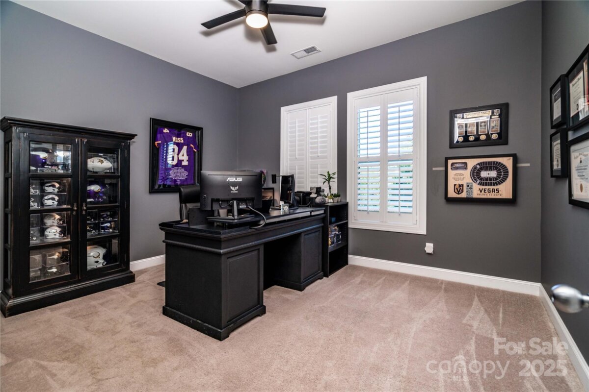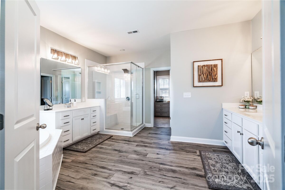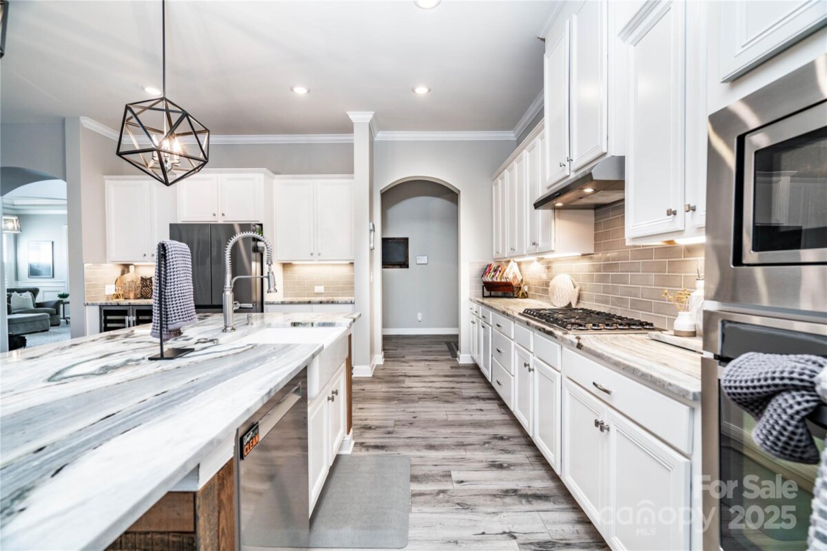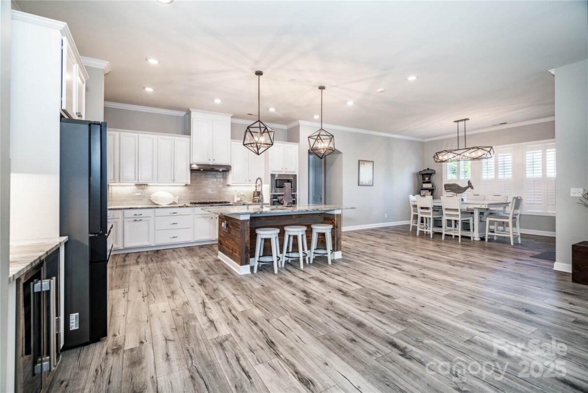 This stunning home offers over 4,700 square feet of living space and is less than 10 years old, yet feels brand new thanks to more than $100,000 in thoughtful upgrades. One of the most impactful updates is a $40,000 full kitchen and lower bathroom remodel, including granite counters and upgraded flooring, giving the heart of the home a fresh, modern feel. The open-concept design is anchored by an oversized island with extended seating, while a see-through fireplace connects the living areas. Hardwood floors remain under the current luxury vinyl for those who prefer the original finish. The sellers have invested in numerous custom details, including California Closets in the owner’s suite and pantry, a custom drop zone, wood accent wall, wine cooler, upgraded lighting and ceiling fans, and fresh paint throughout. Additional enhancements include custom plantation shutters, a Viking gas cooktop, Bosch dishwasher, and even a $2,500 outdoor garbage receptacle cover. Outdoor living shines with a covered patio featuring automated shades, plus a wrought iron fence and professional landscaping. The floor plan is designed for both comfort and flexibility. The huge prime owner’s suite includes a spa-like bath and customized closet. Two secondary bedrooms on the main floor are ideal for guests or can be used as a home office. Upstairs, additional bedrooms are complemented by a huge bonus area that offers endless possibilities for recreation, media, or a private retreat. An extended garage provides extra storage and room for larger vehicles or hobbies. This energy-efficient home was designed to promote a healthier, quieter lifestyle while helping to save on utility costs. The community itself feels like a resort, with amenities that include a pool, cabana, and playground—all set within a peaceful, well-planned neighborhood the sellers have loved.