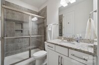 Enjoy the beauty and sport of lake life without the maintenance of a waterfront home. Welcome to this expansive 5-bedroom, 4-bathroom Craftsman-style home in the sought-after Chapel Cove community—offering over 4,250 square feet of light-filled, thoughtfully designed living space and resort-style amenities on tranquil Lake Wylie. Step inside to an open-concept floorplan flooded with natural light, featuring rich wood floors throughout the main level, ambient recessed lighting, and surround sound wiring for immersive entertaining. The formal dining room with elegant wainscoting welcomes guest to dinner, while a dedicated home office with French doors provides privacy and flexibility. The chef’s kitchen is a showstopper, featuring raised panel cabinetry with glass-front accents, stainless steel appliances, a wall oven and microwave, gas range, granite countertops, tile backsplash, and an oversized island with breakfast bar. A butler’s pantry connects seamlessly to the kitchen, and the adjacent breakfast area offers views of the backyard retreat. The main-level living room features a gas fireplace and easy access to the outdoor living space, gas fireplace and stone hearth, extended paver patio, grilling station, firepit, and multiple seating and dining areas for your gatherings. A guest suite with full bath finishes out the main floor. Upstairs, the luxurious owner’s retreat includes a spa-like en suite bath with dual vanities, a walk-in shower, soaking tub, and an unbelievable custom walk-in closet with direct access to the laundry room. A second bedroom suite includes a private full bath, while two additional bedrooms share a spacious hall bath. A generous loft area provides even more flexible living space—ideal for a media room, playroom, or study zone. Outside, the attached 3-car garage includes epoxy floors and ample storage. Every detail of this home has been thoughtfully curated to offer both comfort and function—with multiple living zones, abundant storage, and seamless indoor-outdoor flow. Community amenities in Chapel Cove are second to none, including: Clubhouse & fitness center, Outdoor pool, Pickleball and tennis courts, Basketball courts, Playground, Lake access with paddle sport launch, Scenic walking trails and natural areas. All this, just minutes from shopping, dining, CLT airport, and major commuter routes—yet tucked into a peaceful cove on the shores of Lake Wylie.