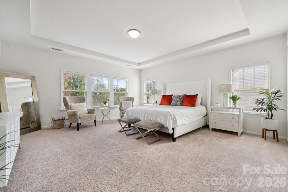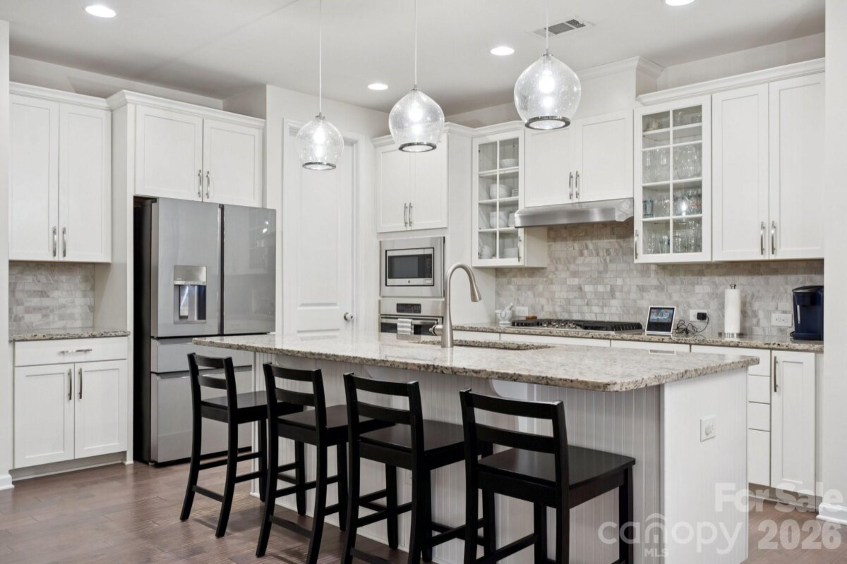Welcome to this spacious and beautifully appointed 5-bedroom, 4-bath home offering over 4,250 square feet with 3-car garage in the highly desirable Chapel Cove community on Lake Wylie. With its upgraded Craftsman-style exterior, open-concept design, and expansive backyard, this home offers the perfect combination of comfort, function, and lifestyle. Inside, the main level features wood flooring, abundant natural light, and a layout designed for both everyday living and effortless entertaining. The kitchen serves as the centerpiece of the home with granite countertops, stainless steel appliances, gas range, wall oven, large island with breakfast bar, raised-panel cabinetry with glass accents, and a butler’s pantry sits perfectly across from the formal dining room. A private office with French doors provides an ideal work-from-home space. Upstairs, fresh new carpet awaits, the owner’s suite offers a relaxing retreat with dual vanities, soaking tub, walk-in shower, and a spacious custom-designed closet with direct access to the laundry room. A secondary suite with private bath, two additional bedrooms with shared bath, and a large loft provide flexible living space for guests, hobbies, or media use. Outdoor living is equally impressive with an extended paver patio, built-in grilling station gas grill and Big Green Egg Kamado Grill and Smoker, firepit, and gas fireplace overlooking a large, open backyard with plenty of space to play, relax, or entertain. The 3-car garage features epoxy flooring and custom built-in storage. Located in Chapel Cove, residents enjoy lake access, clubhouse, pool, fitness center, sport courts, trails, and the beauty of Lake Wylie living without the maintenance of a waterfront home. All this, just minutes from shopping, dining, CLT airport, and major commuter routes—yet tucked into a peaceful cove on the shores of Lake Wylie. Take advantage of this opportunity to live in an expansive home in an established resort-style community.