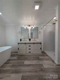 Step into this beautifully renovated manufactured home on over 1 acre of land, offering a bright and airy atmosphere with large windows letting natural light pour in. In a super convenient part of Mooresville, this charming 3-bedroom, 2-bathroom home features a brand-new roof with a 10-year warranty and all-new vinyl flooring throughout. You'll love the luxurious master bathroom with a separate bathtub and shower. Enjoy relaxing on the new deck with a lovely side-view of a park-like, peaceful area. The home also includes a brand-new outdoor heat pump, a new water heater, and a new water pressure tank, plus washer and dryer hookups and all new appliances. It's the perfect blend of comfort and convenience, ready for you to move right in.