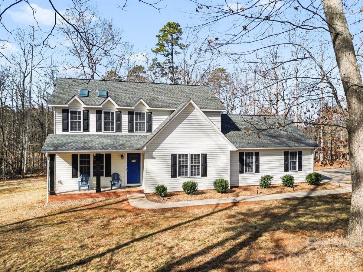 Tucked at the end of a cul-de-sac on a public road, this 4BR/2BA home sits on 3.9 acres with a peaceful, private setting - partially cleared around the home with wooded acreage behind. No HOA. Main-level living: Primary suite on the first floor with a private bath. Hardwood flooring throughout the main living areas. Bathrooms feature tile flooring. Upstairs layout: Three additional bedrooms upstairs, including an oversized 13'9" x 17'8" bedroom with direct access to the full bath (also accessible from the hall) for added convenience. Outdoor living: Enjoy the covered front porch plus a back deck for entertaining, with an additional covered deck area for shade and outdoor enjoyment. Parking + storage: Attached 2-car garage, detached 1-car carport, and a utility shed. Partial fencing in the backyard. Well & septic; 4-bedroom septic permit. Heat pump. Dual Agency Allowed.
