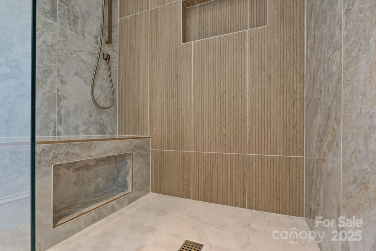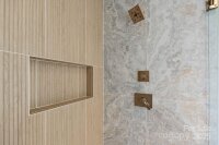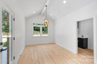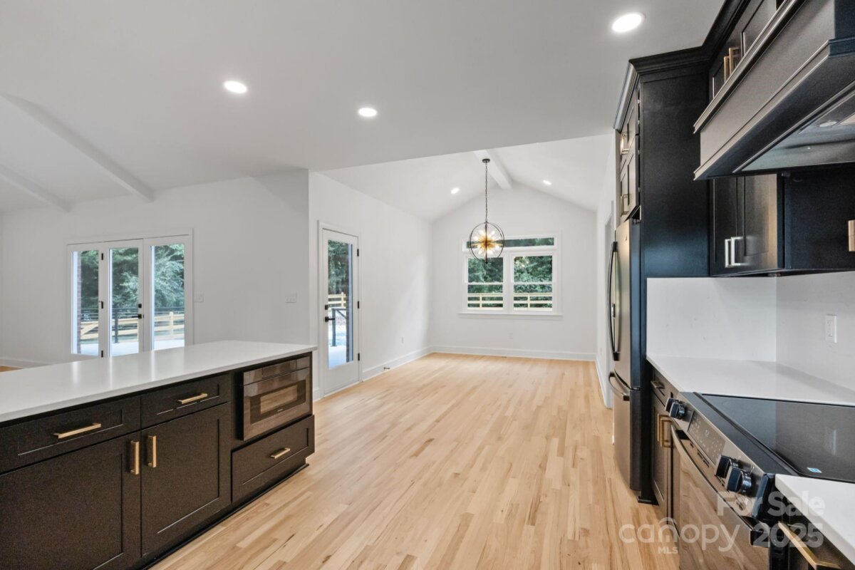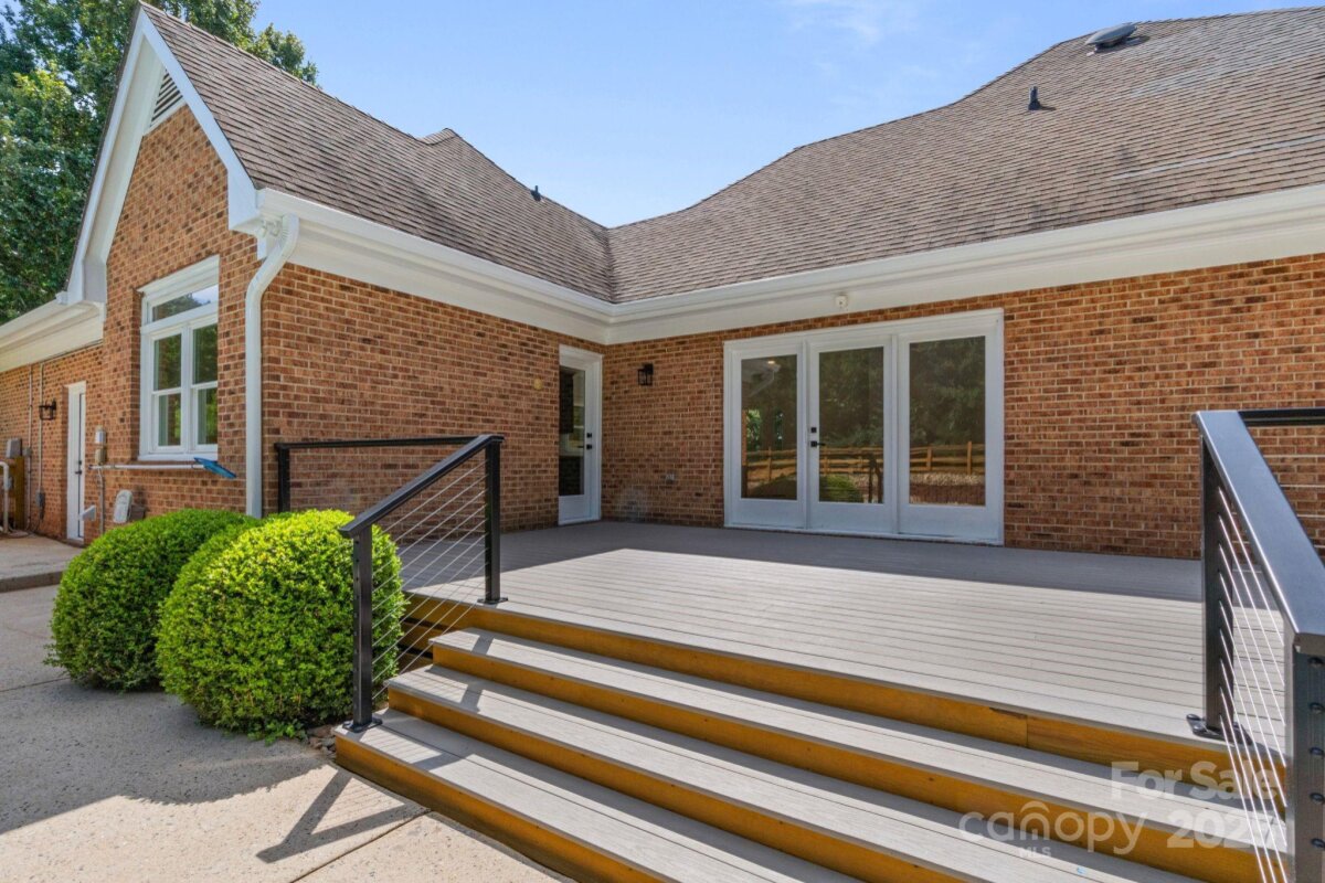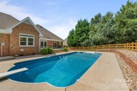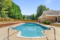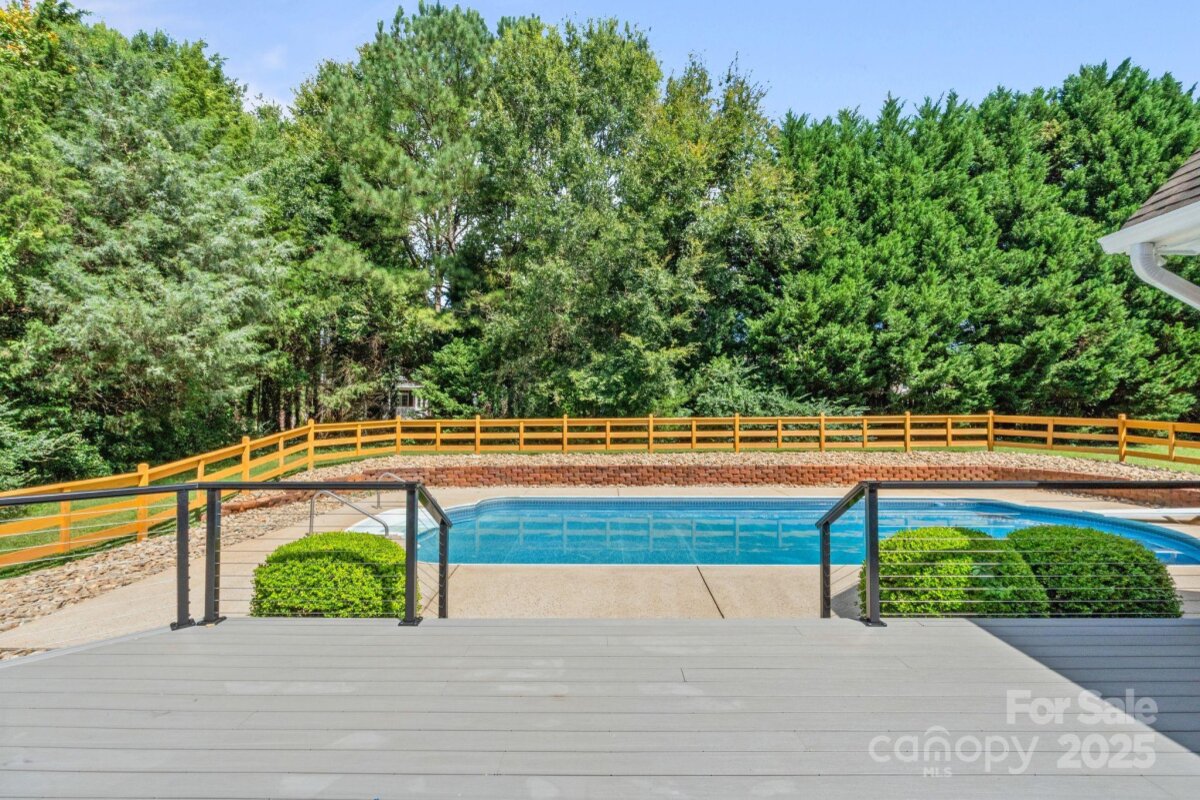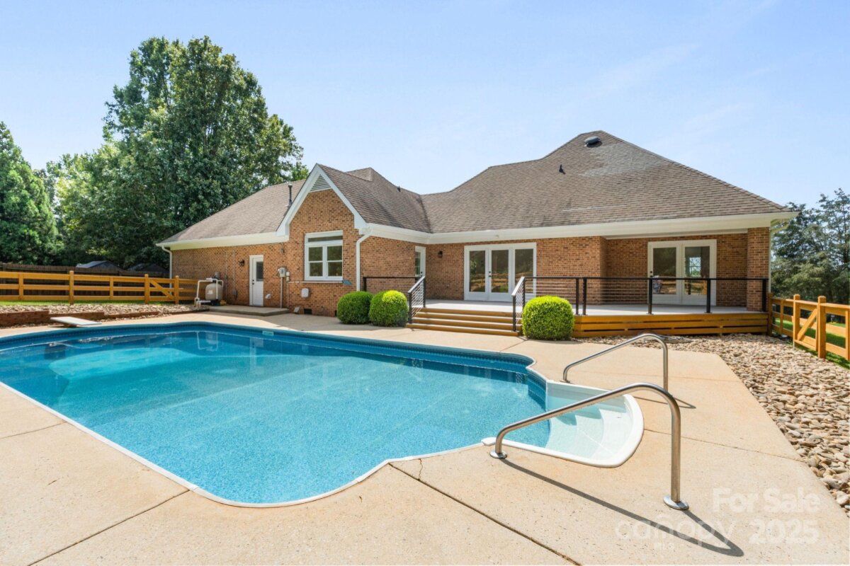 Welcome to this beautifully updated 3-bedroom, 2-bath brick ranch with a pool, perfectly situated within walking distance to Lake Norman, the new Lake Norman Golf Club, and a community owned lake access lot. This home blends timeless charm with modern upgrades, offering everything you need for comfortable, stylish living. Step inside to find vaulted ceilings in the living and dining rooms, creating an open and airy feel. Gleaming refinished wood floors add warmth and elegance throughout. The kitchen is a true showstopper, featuring brand-new cabinets, quartz countertops, and sleek black stainless steel appliances. The spacious primary suite offers a relaxing retreat, complete with a luxurious bathroom boasting a Roman tub, double vanity, custom curbless tile shower with a bench seat, triple shower sprayers, and premium Delta fixtures. Enjoy summer days on the large composite back deck overlooking the private backyard and inground pool—ideal for entertaining or unwinding. An oversized garage provides ample room for vehicles and storage, plus there's an additional 385 sq ft of attic space above for extra storage needs. Pool pump and filter were replaced in 2025. Lake access lot is available through the HOA for $100 annually.