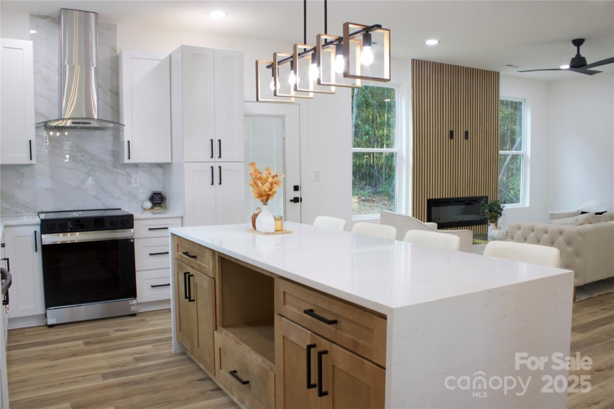 Discover this stunning new construction in Boiling Springs! Nestled at the end of a serene cul-de-sac, this thoughtfully designed 4-bedroom and 3-bath home offers the perfect blend of charm and contemporary living. Designed for both style and comfort, this home seamlessly blends modern elegance with farmhouse warmth, featuring durable Hardie board siding for long-lasting style, bold black windows, and a very welcoming front porch.  As you step inside, you are warmly greeted with an open-concept floor plan, creating a bright and inviting atmosphere, enhanced by large windows that flood the home with natural light and highlight the sleek, high-quality finishes throughout. The heart of the home is the impressive kitchen, showcasing 42†soft close white and honey shaker-style cabinets, modern white quartz countertops, an 8 ft island with waterfalls on both sides, stainless steel appliances, and luxury vinyl flooring throughout the home. Enjoy the spacious wooden deck, perfect for relaxing while soaking in the views. Book your showing today and explore the possibilities of peaceful living in this modern farmhouse gem.