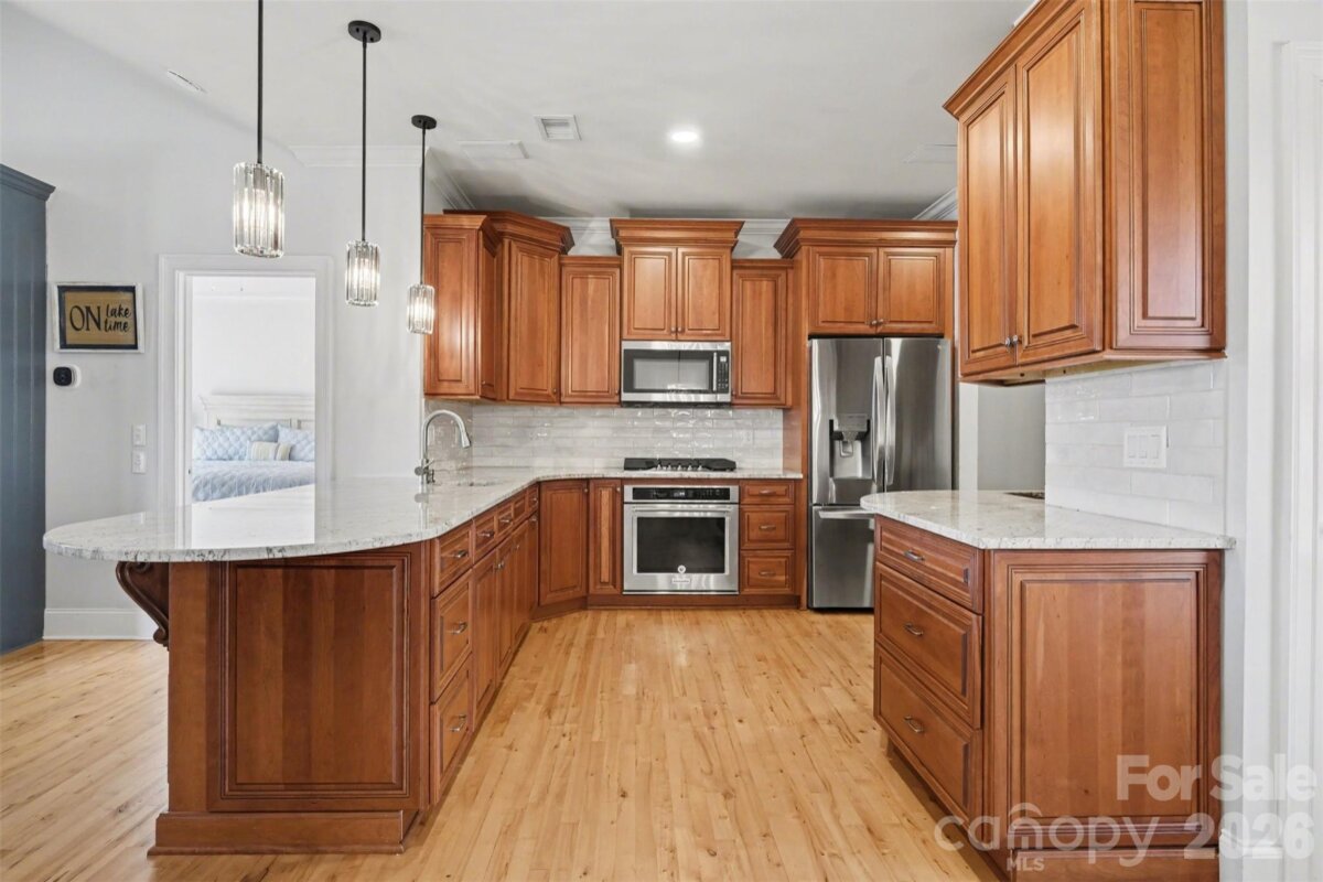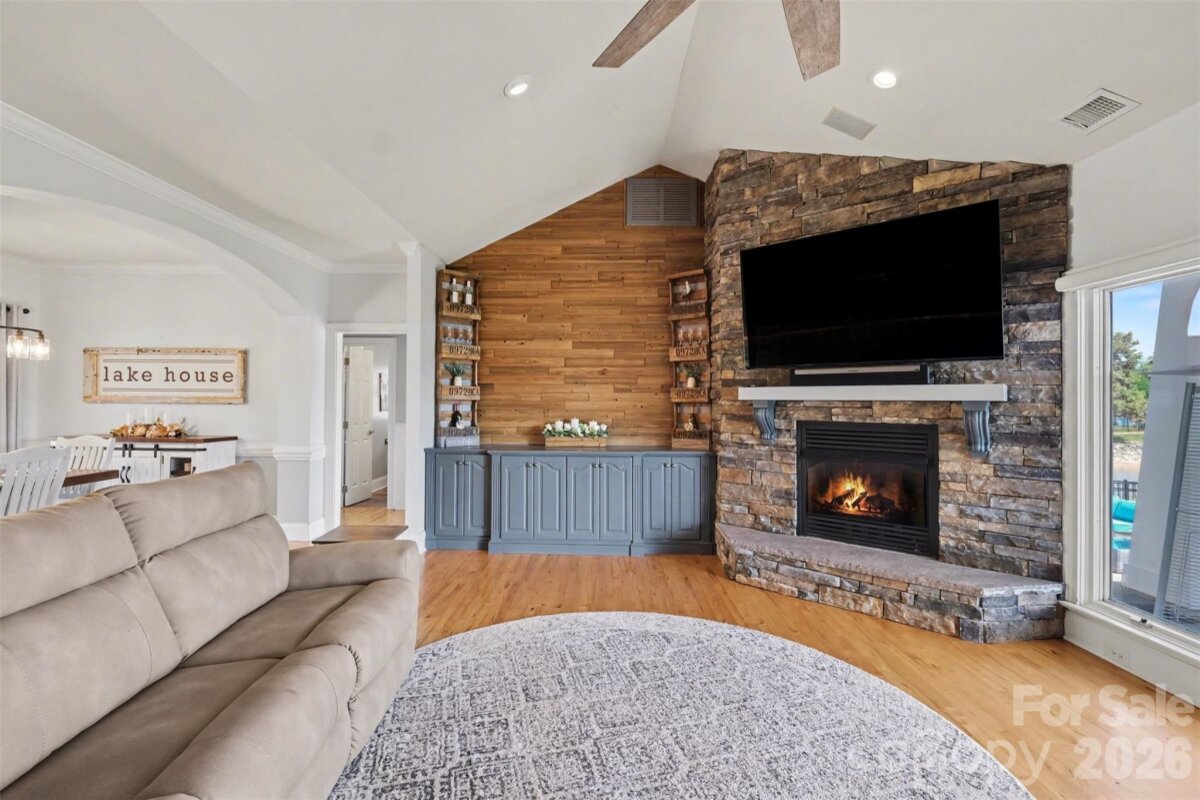 THIS CUSTOM WATERFRONT HOME IS TRULY EXCEPTIONAL! Enjoy stunning lakefront living with deep water access on a prime, flat, lake front lot, that's a short walk to the pool and local restaurants. This beautifully maintained home features maple hardwood floors, custom cherry cabinetry, granite countertops, and stainless steel appliances. Outdoor living shines with a brick paver patio and walkways, a TREX dock, 6,000 lb boat lift, lake-fed irrigation, and an oversized garage with professionally finished floors. Recent upgrades add even more value, including a fully renovated primary bathroom, new HVAC system, new gas logs, new cooktop, and a new hot water heater. The shoreline has been reinforced with new riprap, and additional improvements include leaf filter gutter guards, a new fence, and a stunning pergola with automated opening and closing features. A true must-see waterfront retreat!